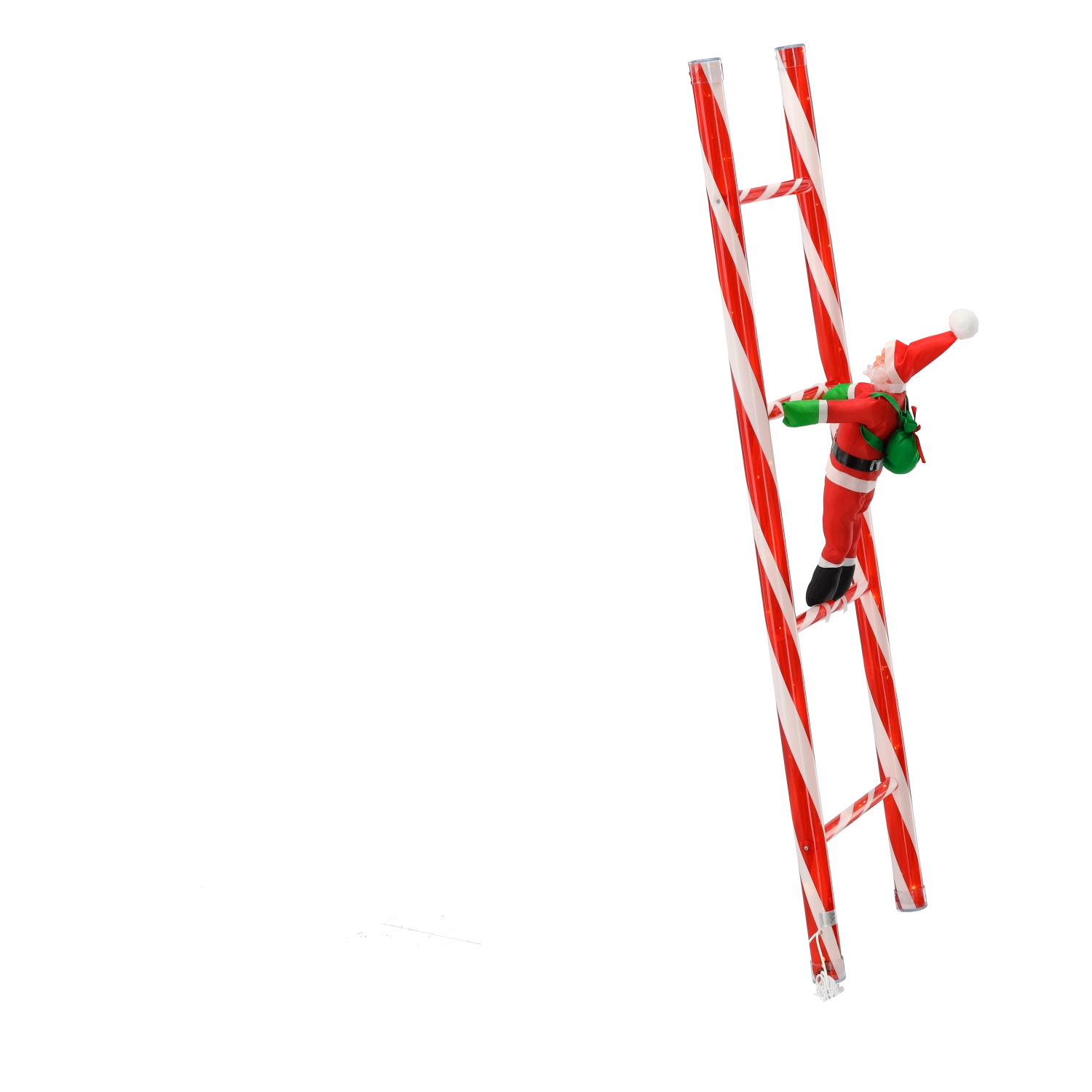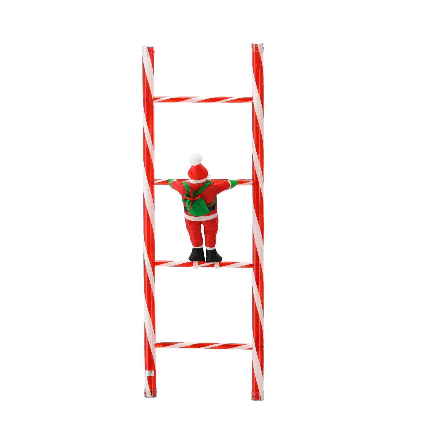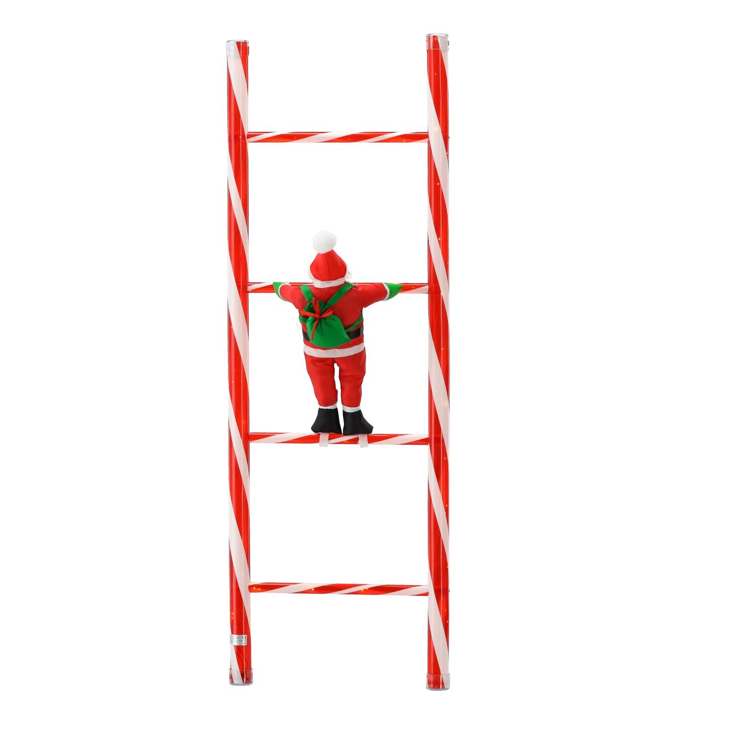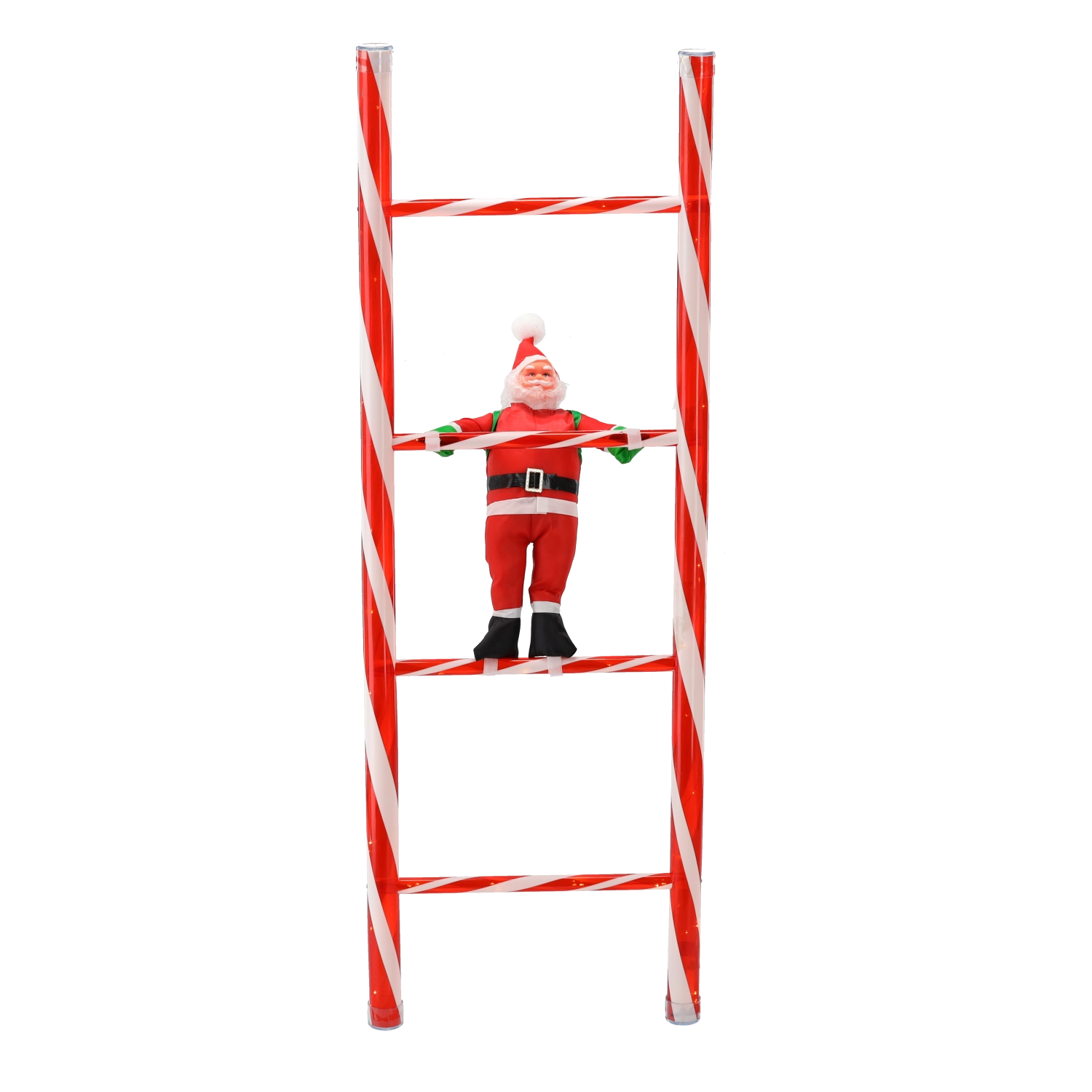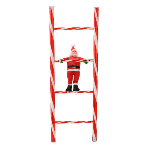 De rood-witte “suikerstok”-ladder en de Kerstman-figuur trekken de aandacht van zowel kinderen als volwassenen en vormen het middelpunt van je kerstdecoratie.