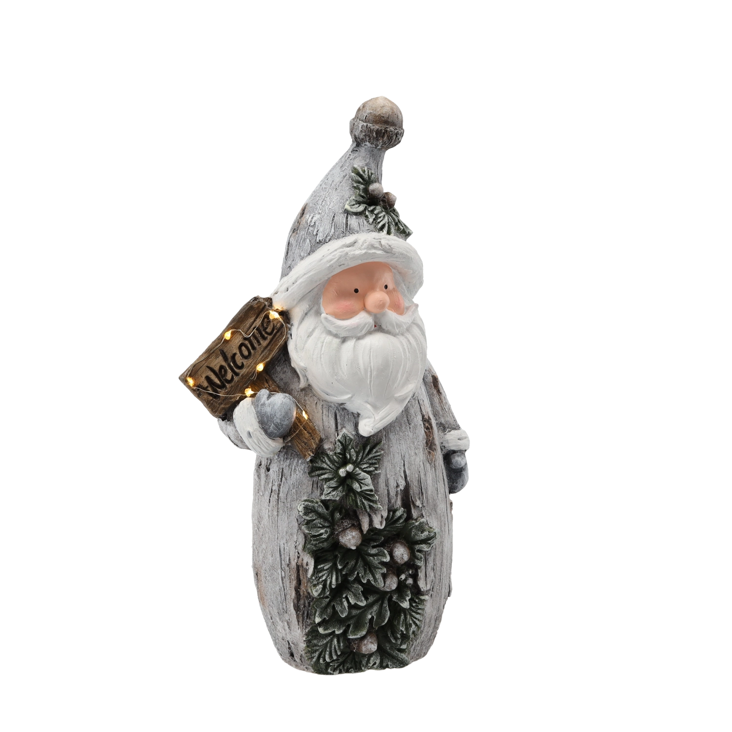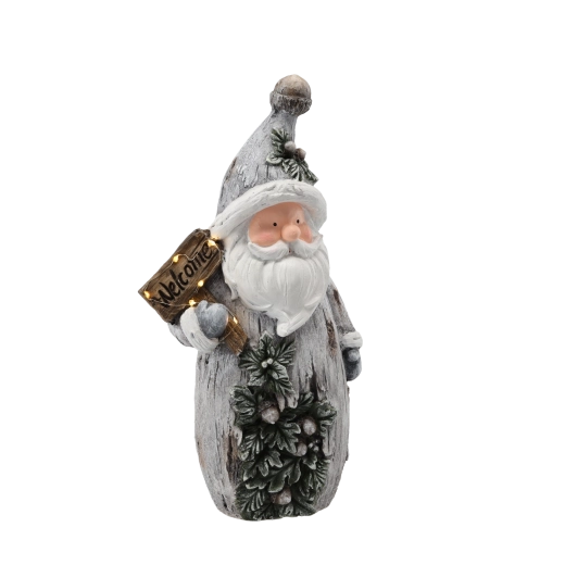 Stijlvolle kerstfiguur SANTA met de tekst “Welcome” die je huis laat stralen dankzij de geïntegreerde LED-verlichting. Dankzij de compacte afmetingen is hij perfect voor op een plank, dressoir of vensterbank. Het hoogwaardige magnesiumcomposiet en de voeding via 3× AAA-batterijen (niet inbegrepen) zorgen voor eenvoudige plaatsing zonder kabels.