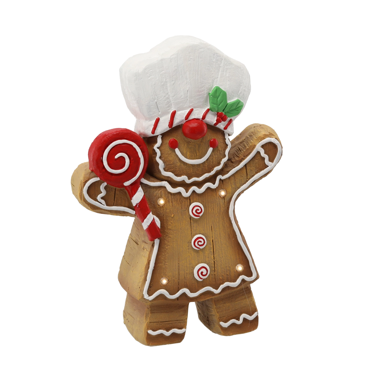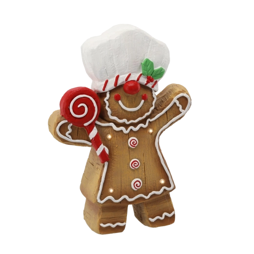 Deze peperkoekfiguur met koksmuts en schattige bakversiersels brengt elk kersthoekje tot leven. Geïntegreerde warme LED’s schijnen zacht door de decoratieve details en zorgen overdag en ’s avonds voor een aangename feeststemming.