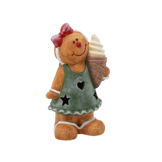 Creëer thuis een betoverende adventssfeer met deze keramische peperkoekmannetje-figuur. De geïntegreerde LED-verlichting verlicht subtiel de details van de decoratie en geeft het interieur een warme gloed. Met afmetingen van 14 × 10 × 23 cm is hij ideaal als losse decoratie of als onderdeel van een kerstarrangement.