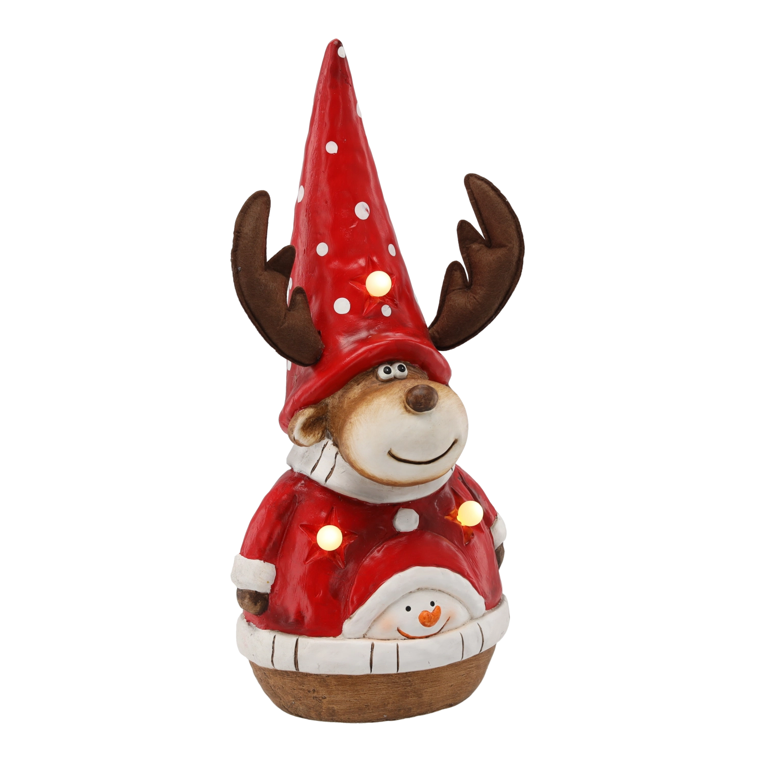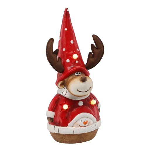 Kerstfiguur – rendier met muts met LED-verlichting 48 cm