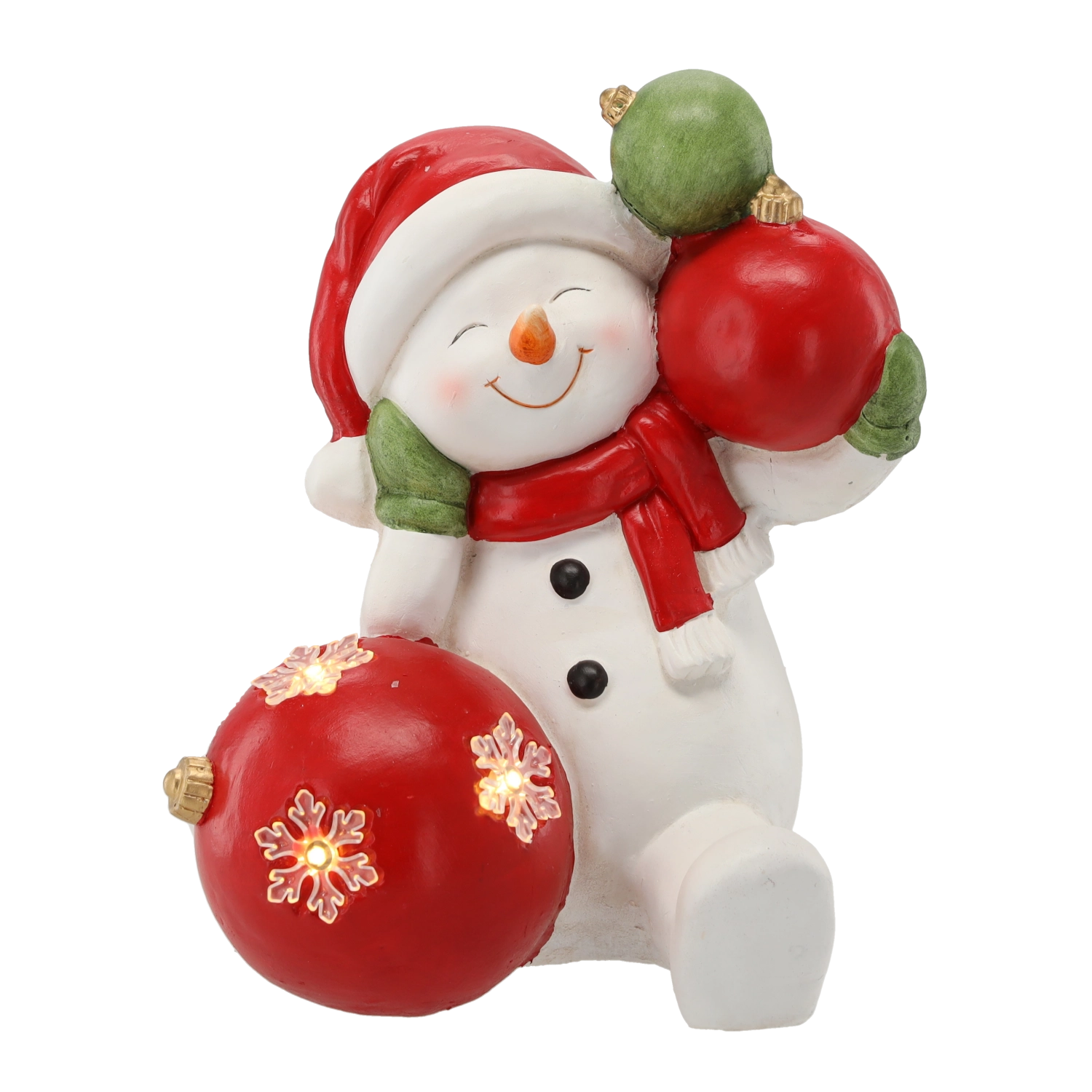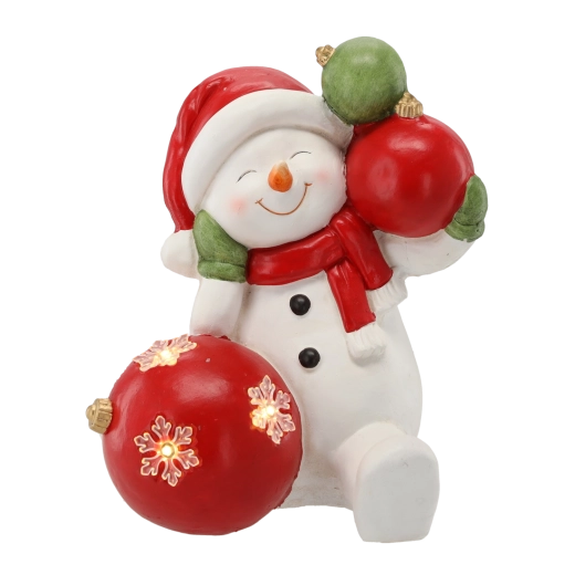 Deze gedetailleerd uitgewerkte kerstfiguur van een sneeuwman met balletjes brengt een warme feestelijke sfeer in je interieur. Het zachte LED-licht accentueert de decoratie en creëert aangename lichtaccenten tijdens lange winteravonden. Dankzij het robuuste materiaal van magnesium is de decoratie stabiel en duurzaam.