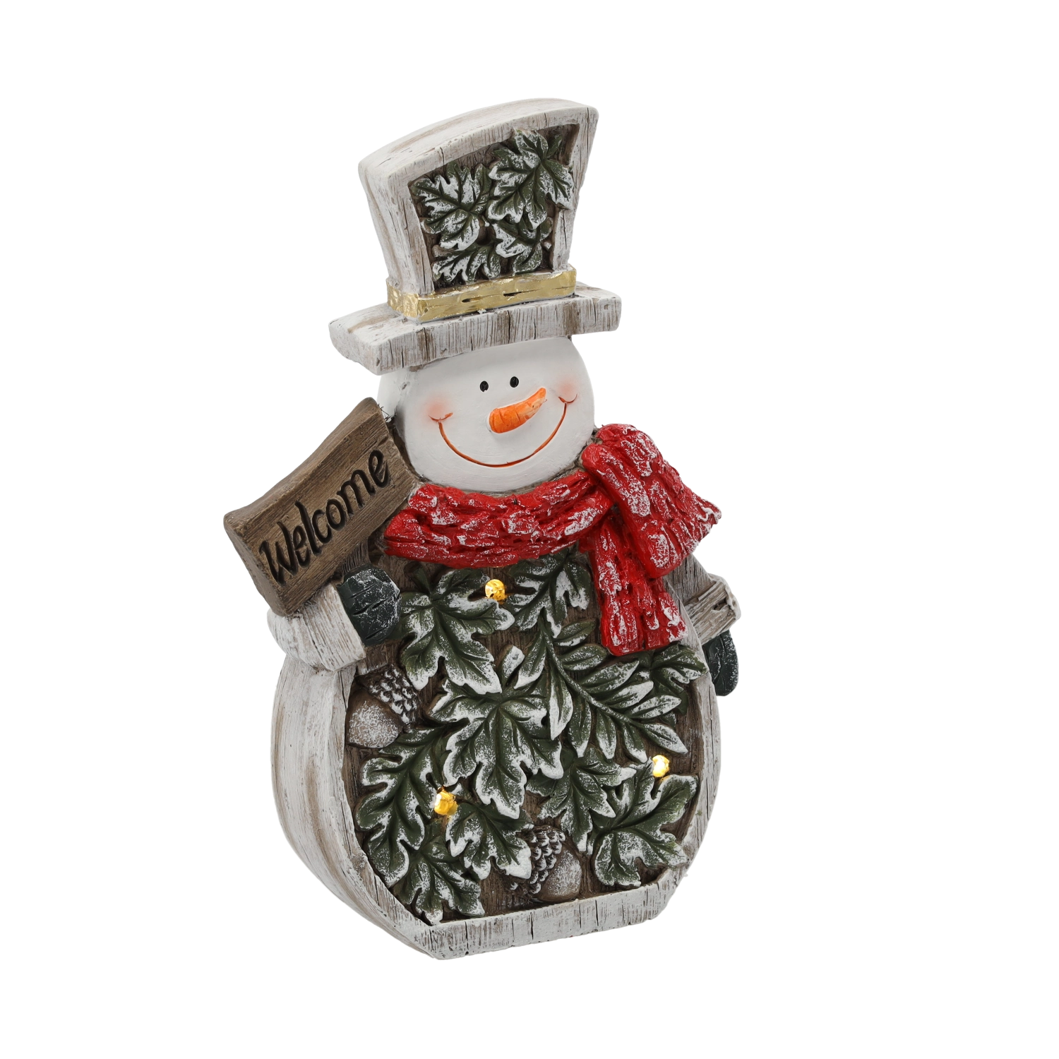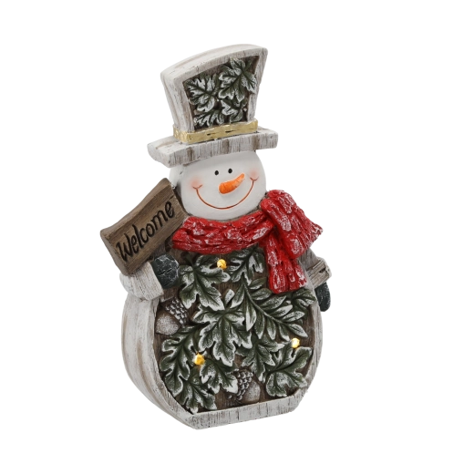 Verlicht je huis met een betoverende sfeer dankzij deze kerstdecoratie – een sneeuwman met blaadjes en geïntegreerde LED-verlichting. Het elegante design en de hoogwaardige afwerking van magnesiumcomposiet geven je interieur een feestelijke uitstraling, terwijl de compacte afmetingen het eenvoudig maken om hem op een plank, dressoir of vensterbank te plaatsen. Voeding via 3× AAA-batterijen zorgt voor eenvoudig gebruik zonder kabels.