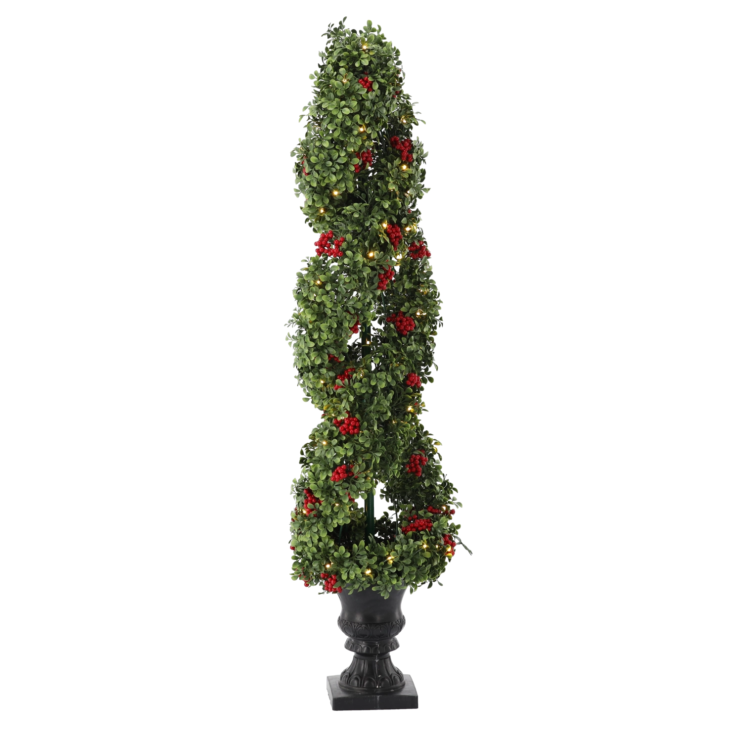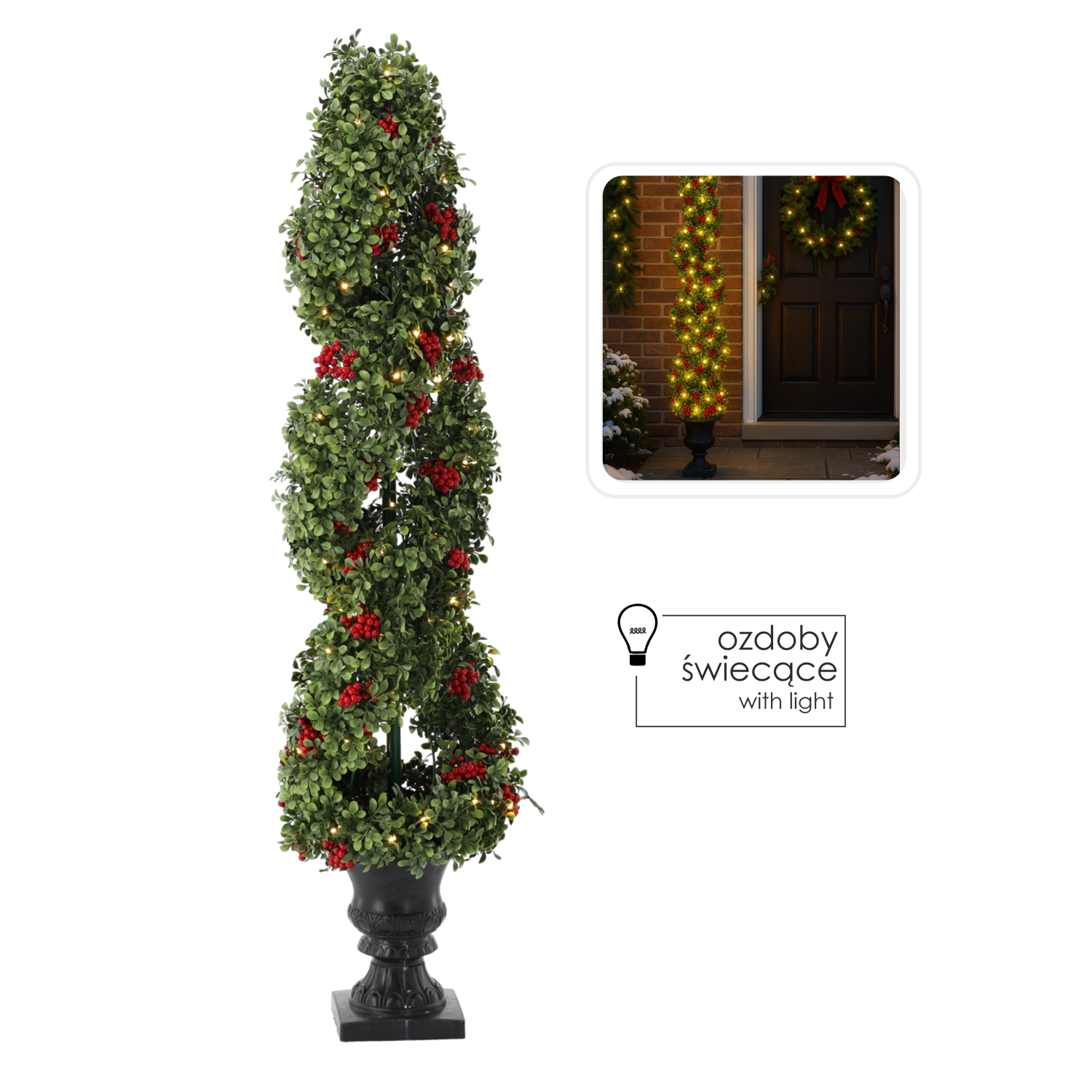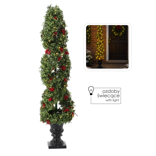 Elegante kerstboom met warme LED’s brengt een betoverende feestelijke sfeer in huis. Realistische groene takjes, rode lijsterbessen en 100 warme LED’s zorgen voor aangenaam, zacht licht zonder gedoe met uitvallende naalden. De stabiele decoratieve pot en netvoeding met 3 m kabel maken plaatsing thuis of op kantoor eenvoudig.
