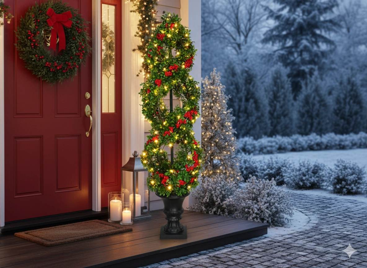 Rijke vertakking met 858 takjes en decoratieve rode lijsterbessen geven de boom een natuurlijke, feestelijke uitstraling die past in zowel moderne als klassieke interieurs.