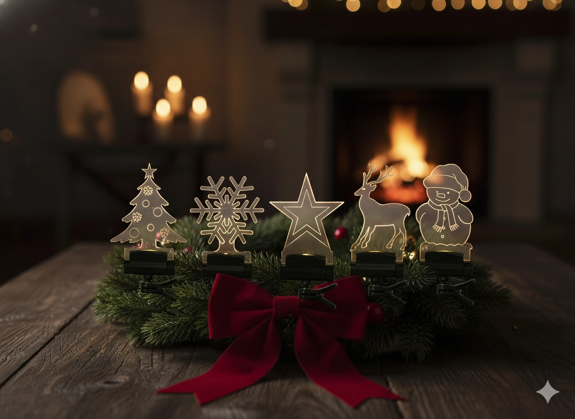 Een stijlvolle set LED-decoraties verandert elke hoek in een knusse, feestelijke plek. De heldere acrylmotieven lichten bij het inschakelen op met warm wit licht en creëren een subtiel, elegant effect zonder kabels of boren. Dankzij de universele bevestigingen plaats je ze precies waar ze het best uitkomen.