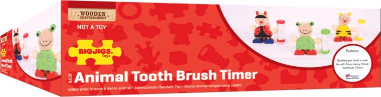 Maak van tandenpoetsen een leuk ritueel! Deze praktische kindertandenborstelhouder met geïntegreerde zandloper meet 3 minuten poetsduur, beschermt de borstel tot de volgende keer en lokt met een kleurrijk dierendesign (kikker, lieveheersbeestje, tijgertje). Gemaakt van hoogwaardig hout en kunststof, voldoet aan de Europese veiligheidsnormen.
