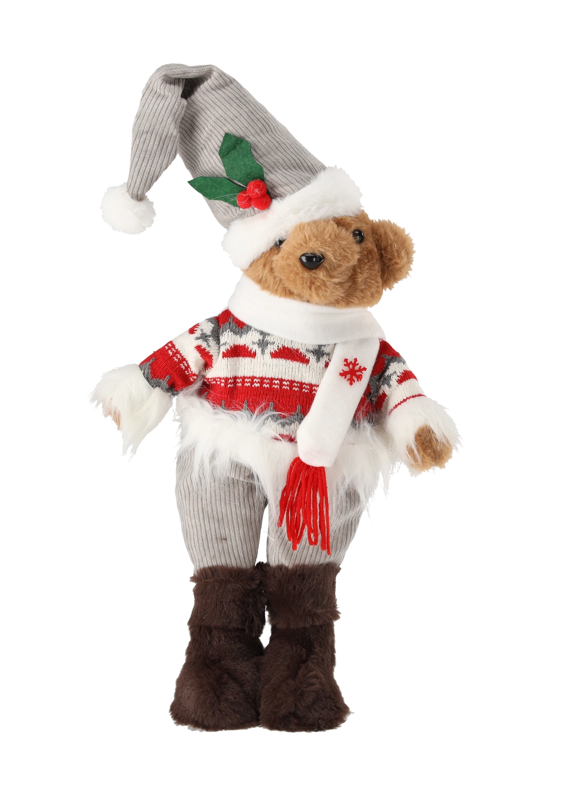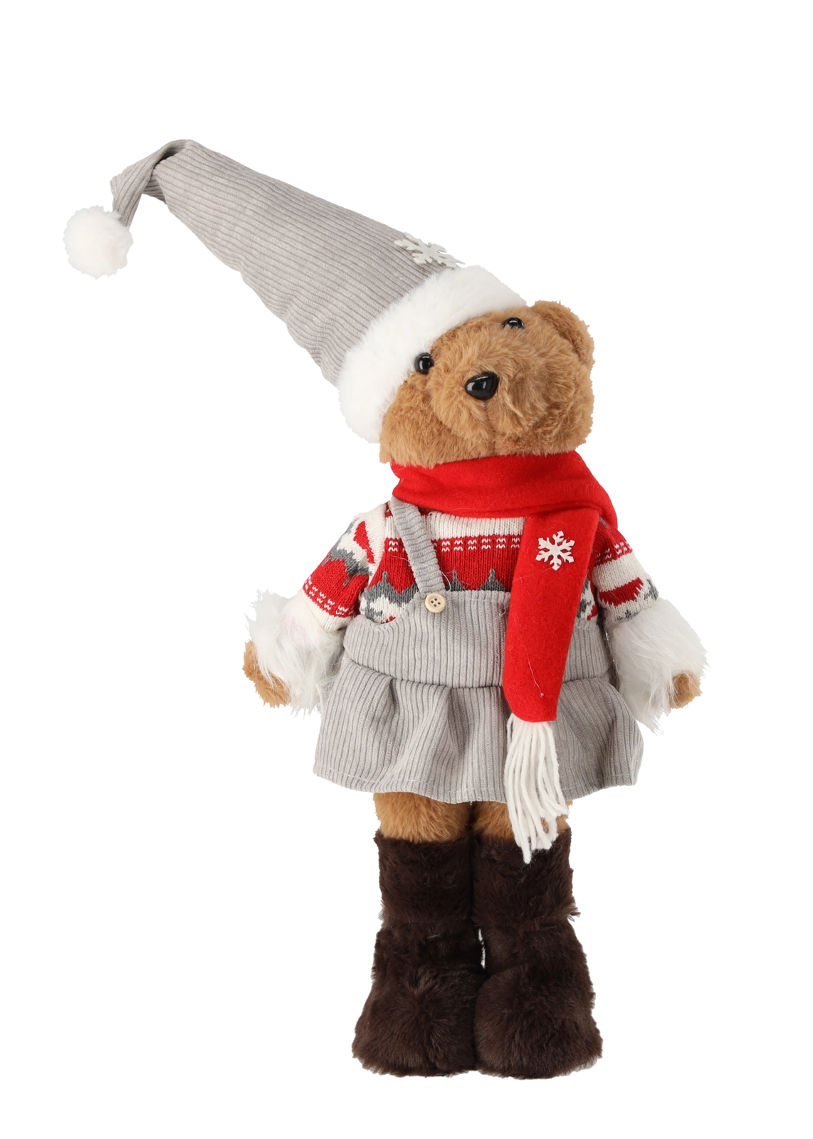Creëer een magische feestelijke sfeer met deze decoratieve pluchen beer van 50 cm hoog. Elk stuk is gekleed in een stijlvolle winteroutfit met rijke details die het feestelijke karakter benadrukken. De zachte uitvoering voelt prettig aan en geeft elke ruimte een warme uitstraling.