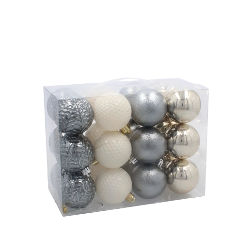 Set van kerstballen 6 cm – champagne, grijs en wit (24 stuks)