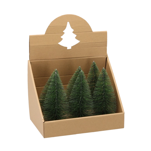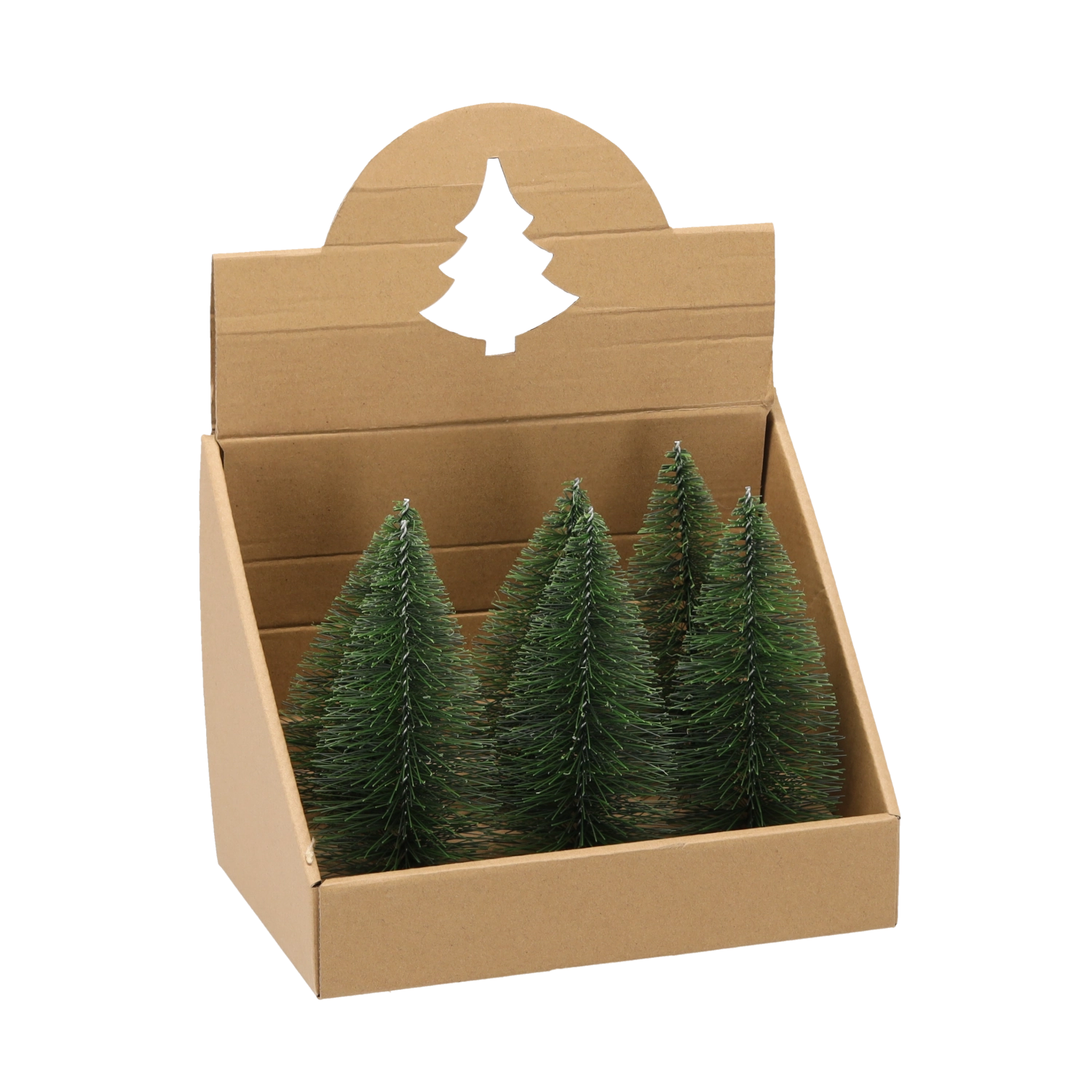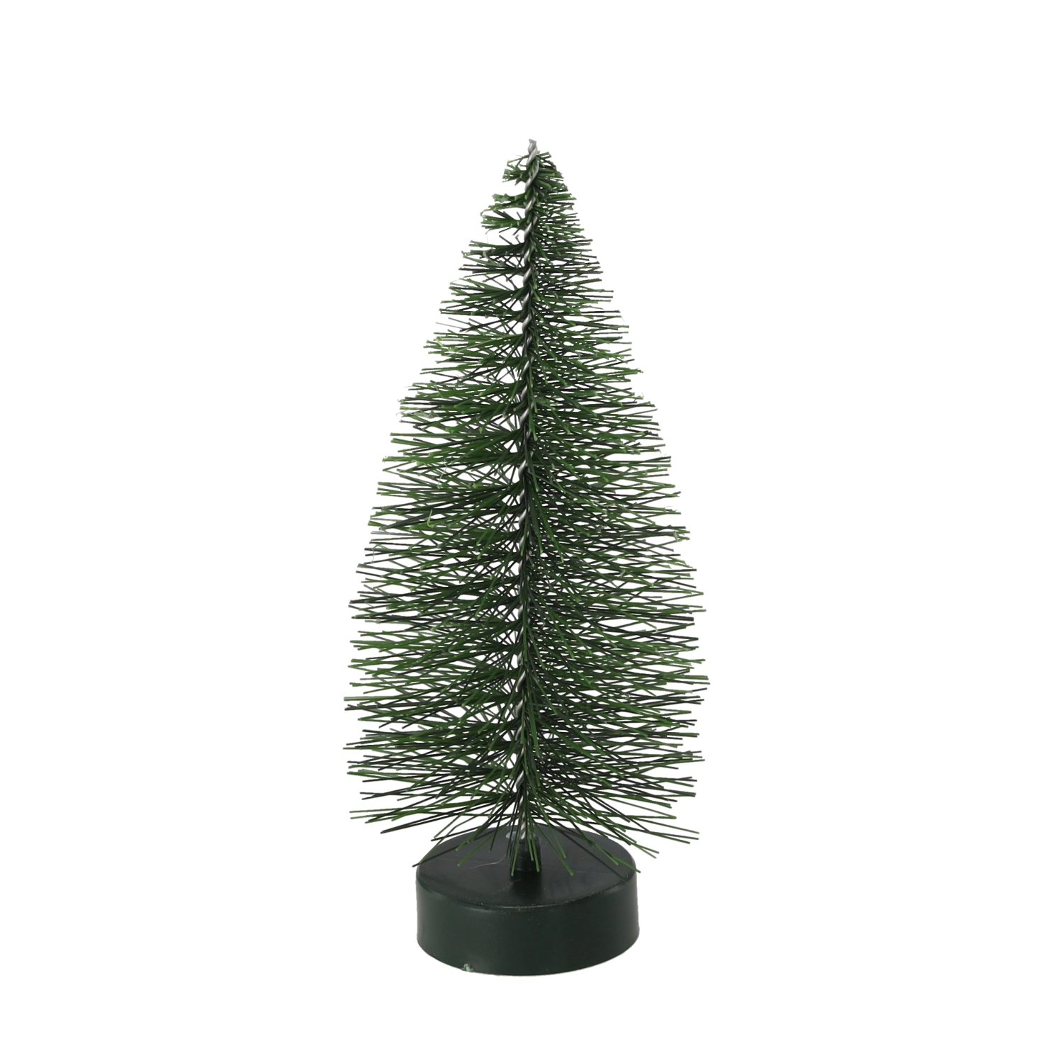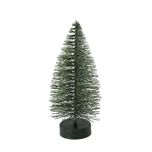 Compact mini kerstboompje van 18 cm hoog in een diep groene kleur, ideaal als decoratie voor kleine ruimtes. Dankzij de realistische uitstraling, stabiele basis en duurzame kunststof uitvoering creëert het eenvoudig een feestelijke sfeer op tafel, plank of vensterbank.
