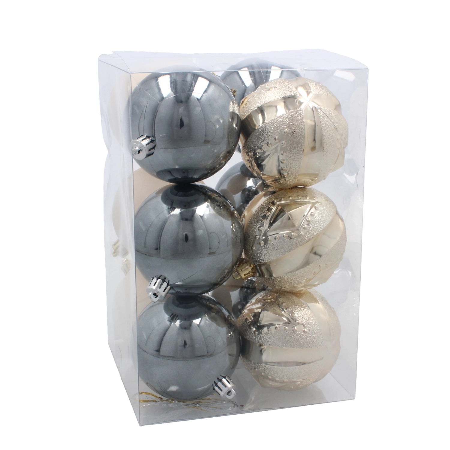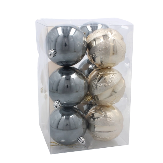 Breng je kerstboom tot in de perfectie. Deze zorgvuldig op elkaar afgestemde set glazen ballen biedt stijl, duurzaamheid en een uniforme uitstraling die in ieder interieur luxe oogt. De combinatie van champagne, grijs en wit zorgt voor een subtiel contrast en een fraai spel van lichtreflecties.