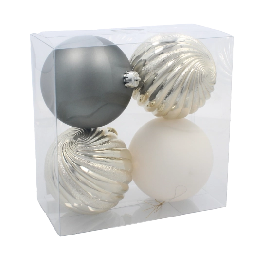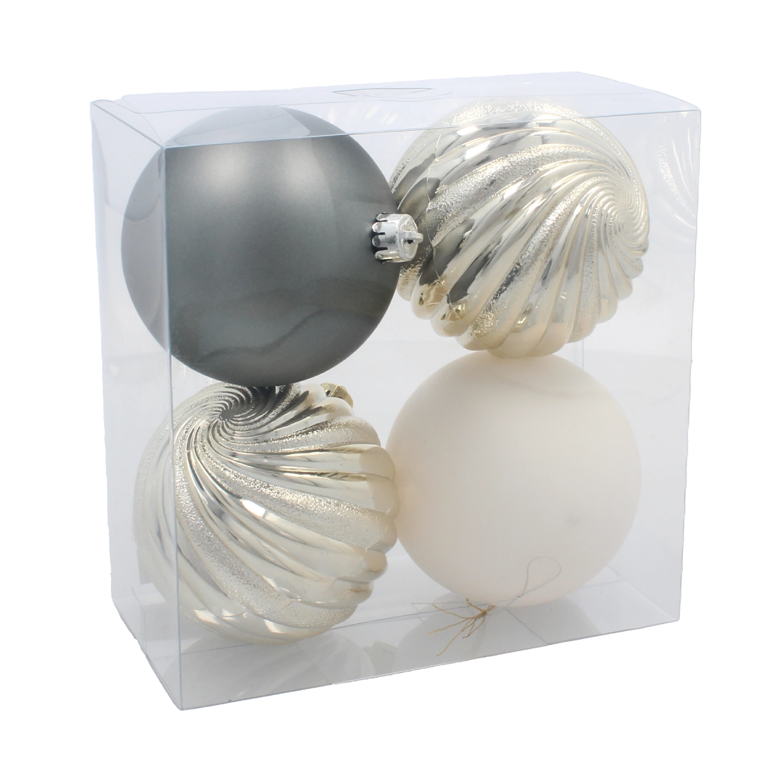 Set van kerstballen 10 cm – champagne, grijs en wit (4 stuks)