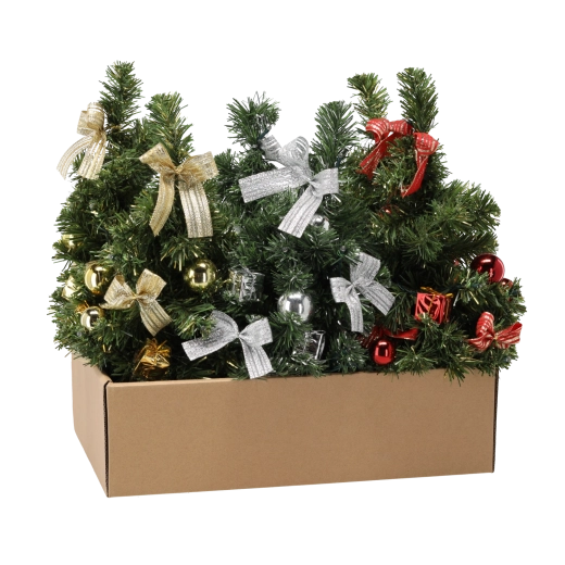 De boom is vooraf versierd met strikjes en ballen in diverse kleuren, waardoor extra schikken niet nodig is. Energiezuinige LED-diodes zorgen voor een lange levensduur en laag verbruik.