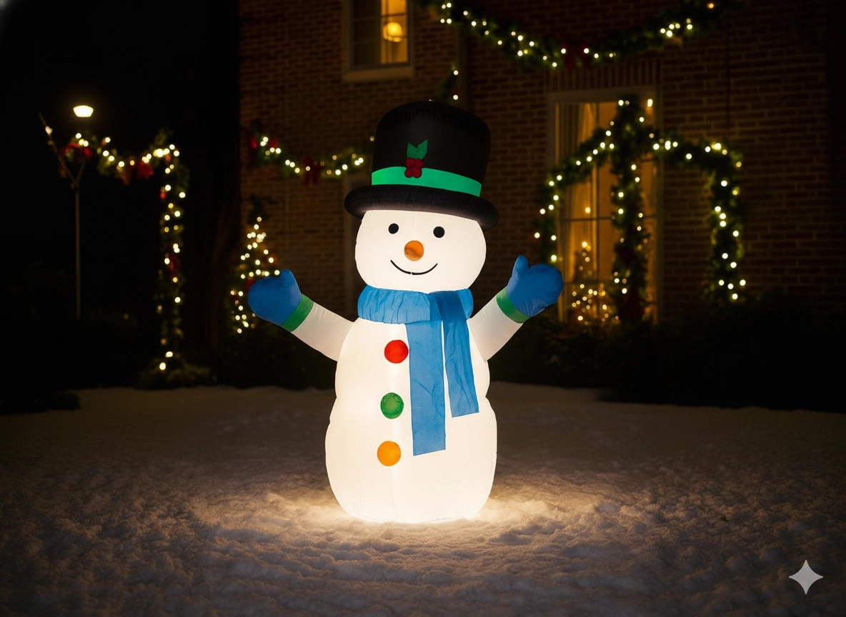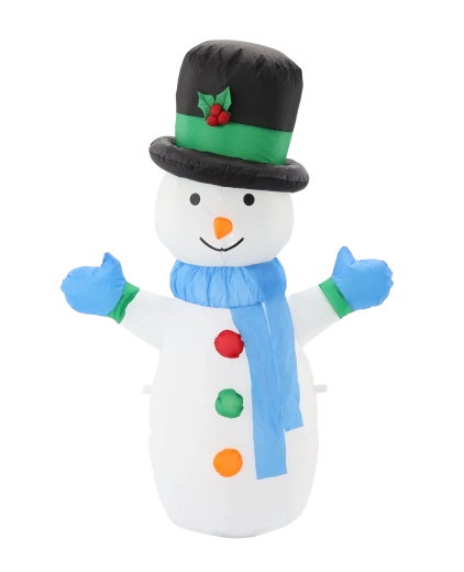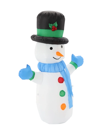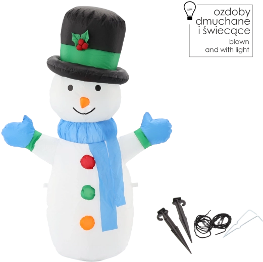 Breng een feestelijke sfeer in huis en buiten met deze 120 cm hoge opblaasbare sneeuwman. Dankzij de geïntegreerde LED‑verlichting straalt hij een warm licht uit, hij blaast zichzelf snel op zodra hij op het stroomnet is aangesloten en de IP44‑bescherming zorgt voor betrouwbare werking, ook bij winterweer.