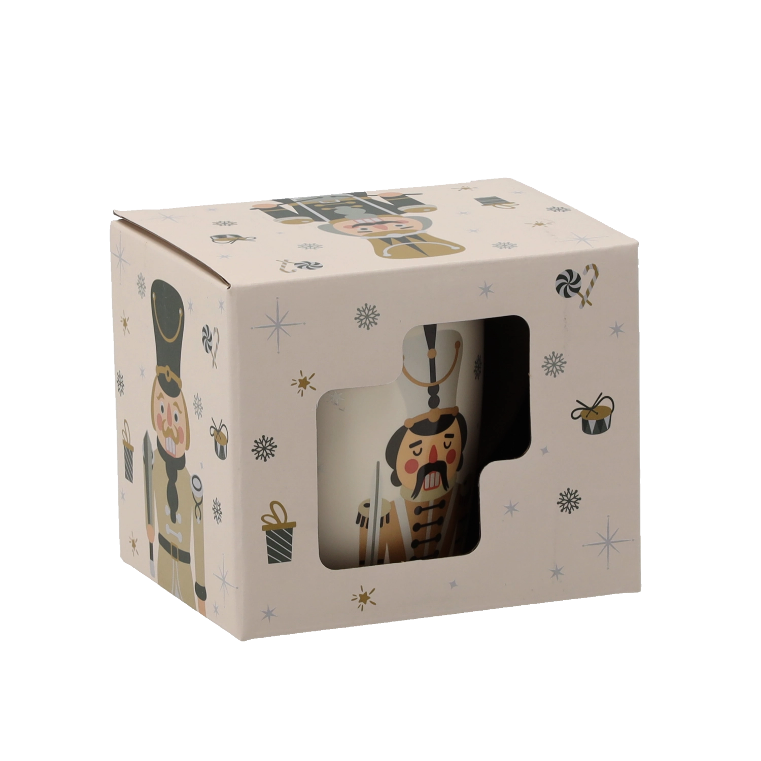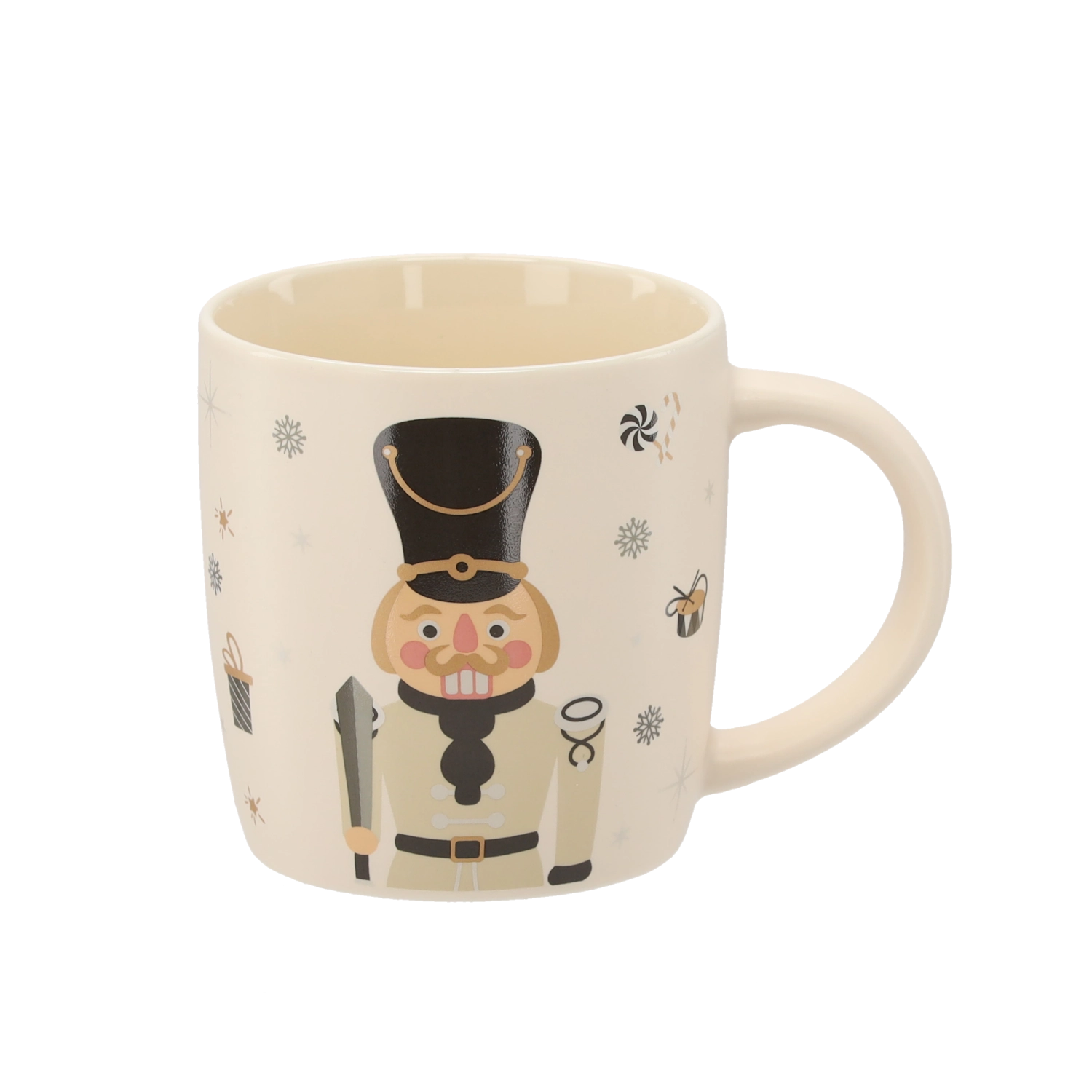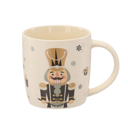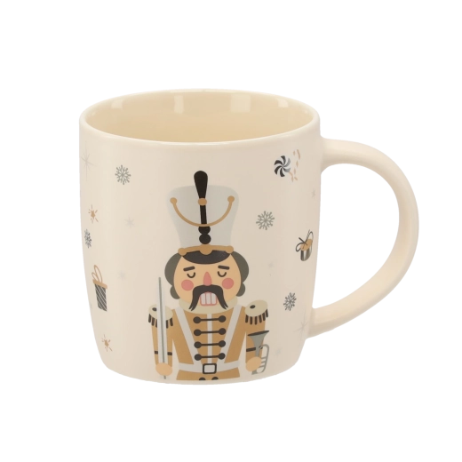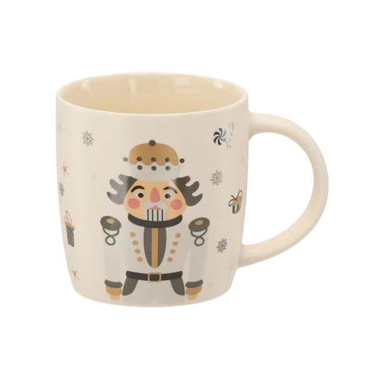 Breng een feestelijke sfeer in huis met deze porseleinen mok van 365 ml. De elegante beige basis wordt aangevuld met illustraties van een notenkraker, sneeuwvlokken, cadeaus en snoepgoed. Hoogwaardig porselein en een gladde glazuur zorgen voor een lange levensduur en eenvoudig onderhoud.