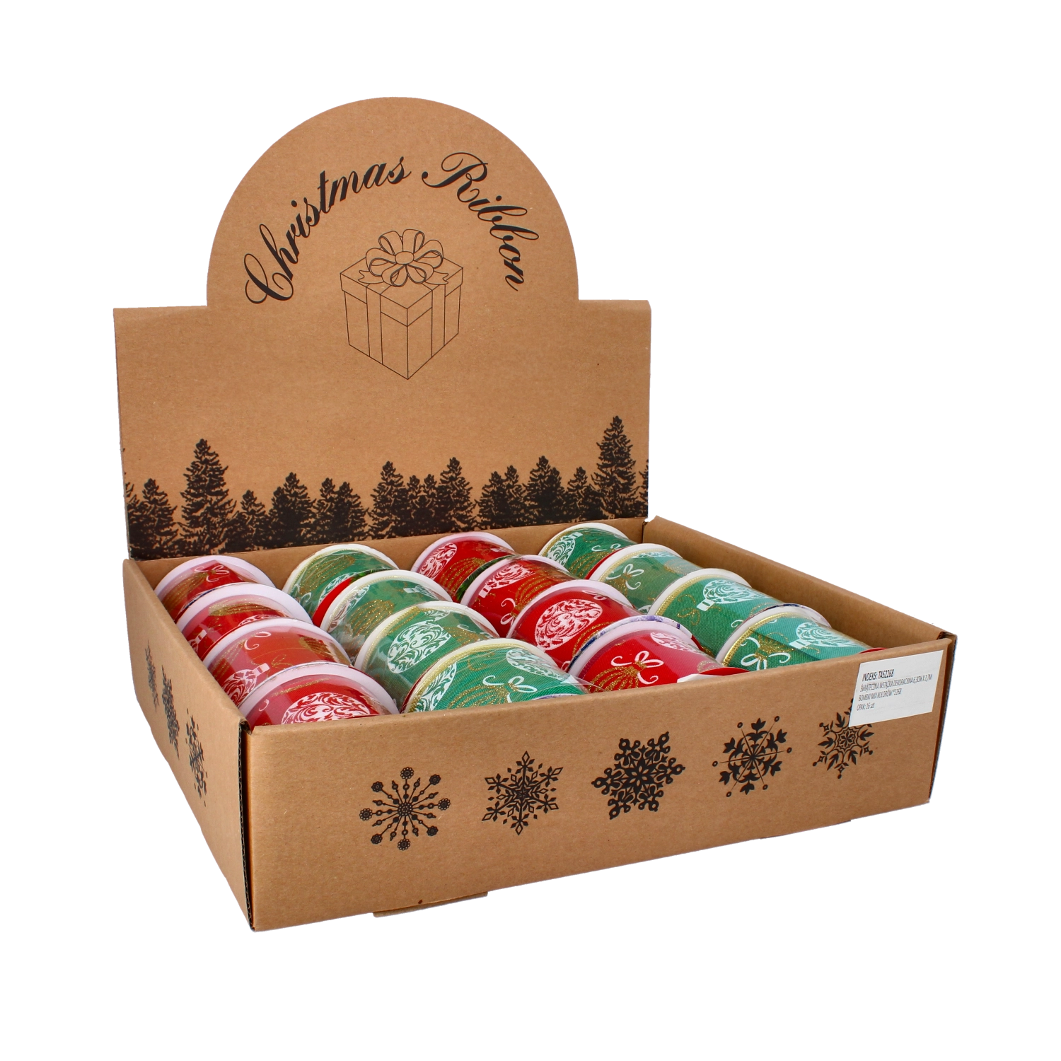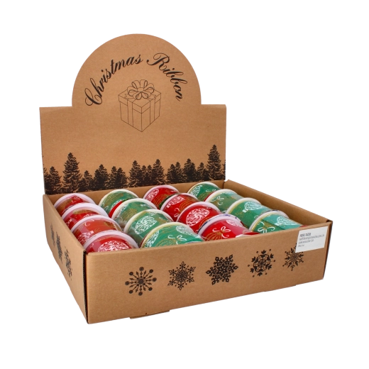 Dit hoogwaardige polyesterlint met een satijnen glans is ideaal voor creatief inpakken en het maken van kerstdecoraties. De levendige kleuren en het patroon met kerstornamenten maken het tot een opvallend element dat de kerstsfeer versterkt en past bij diverse stijlen inpakpapier en decoraties.