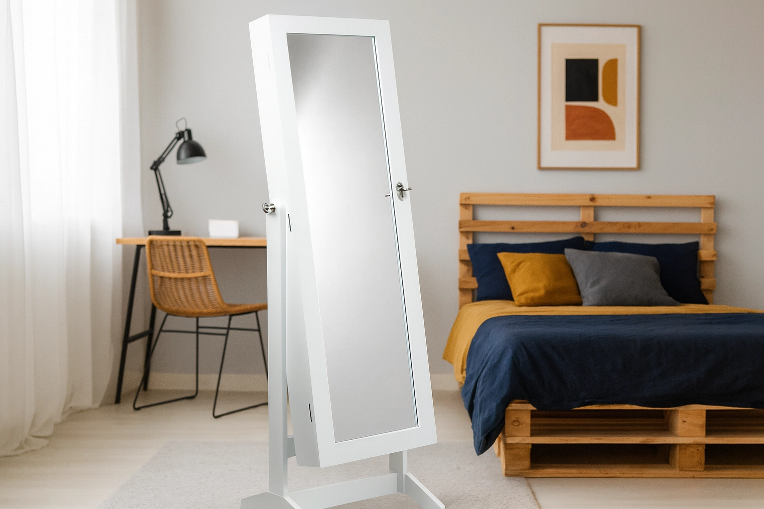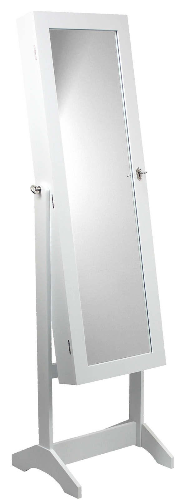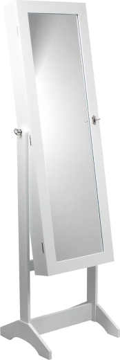 Elegante en ruime sieradenkast met een staande full-body spiegel biedt georganiseerde opbergruimte voor sieraden, veilig afsluiten met sleuteltje en een moderne witte look die in elke slaapkamer past. Het interieur met zacht pluche beschermt je kostbaarheden en de grote spiegel vereenvoudigt aankleden en dagelijkse styling.