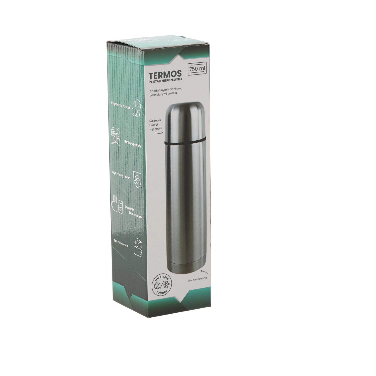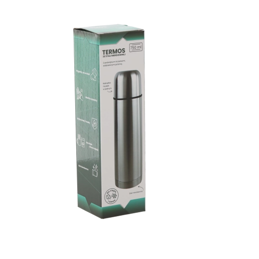 Praktische thermosfles met een inhoud van 750 ml met een dubbelwandige roestvrijstalen behuizing houdt je dranken langdurig warm of koud. Biedt uitstekende thermische isolatie – na 24 uur is de drank nog steeds rond de 40–43 °C. De ergonomische afmeting en hoogwaardige afwerking zorgen voor duurzaamheid en comfortabel gebruik thuis, op het werk en onderweg.