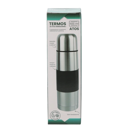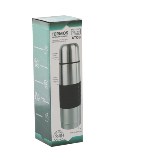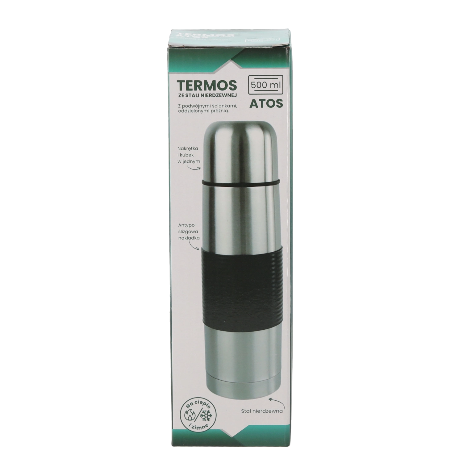 Houd je favoriete drankje de hele dag op de juiste temperatuur. De Atos-thermos van 500 ml maakt gebruik van een dubbelwandige roestvrijstalen constructie die uitstekende thermische isolatie en langdurige prestaties biedt.