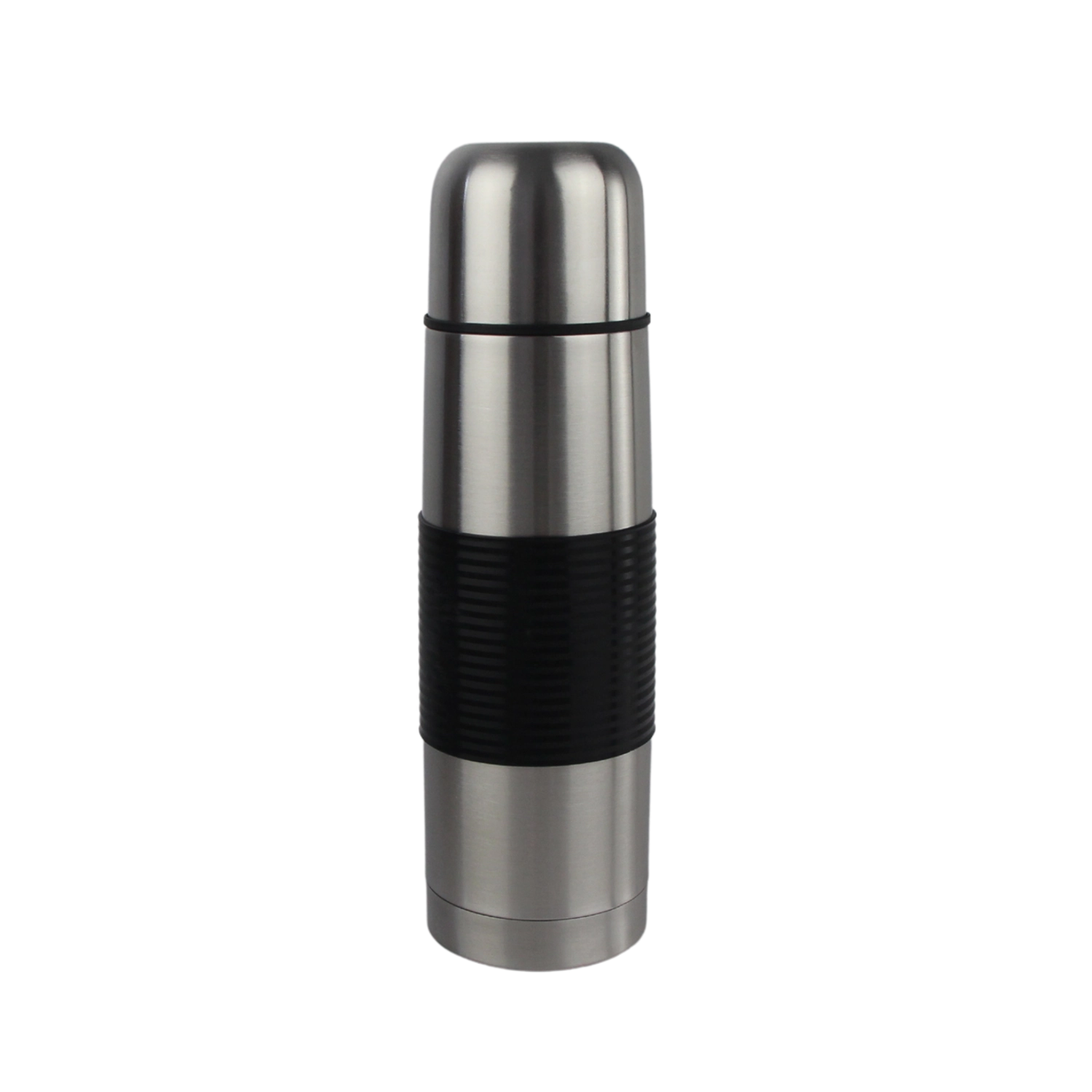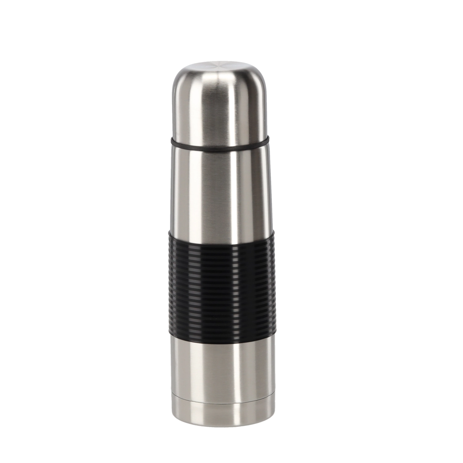 Compacte en betrouwbare thermosfles van 500 ml voor dagelijks gebruik. Dankzij de dubbelwandige roestvrijstalen constructie houdt hij de temperatuur van dranken uitstekend vast, de siliconen antislipgreep zorgt voor comfortabele houvast en hij is ideaal voor op reis, naar het werk en voor uitstapjes.