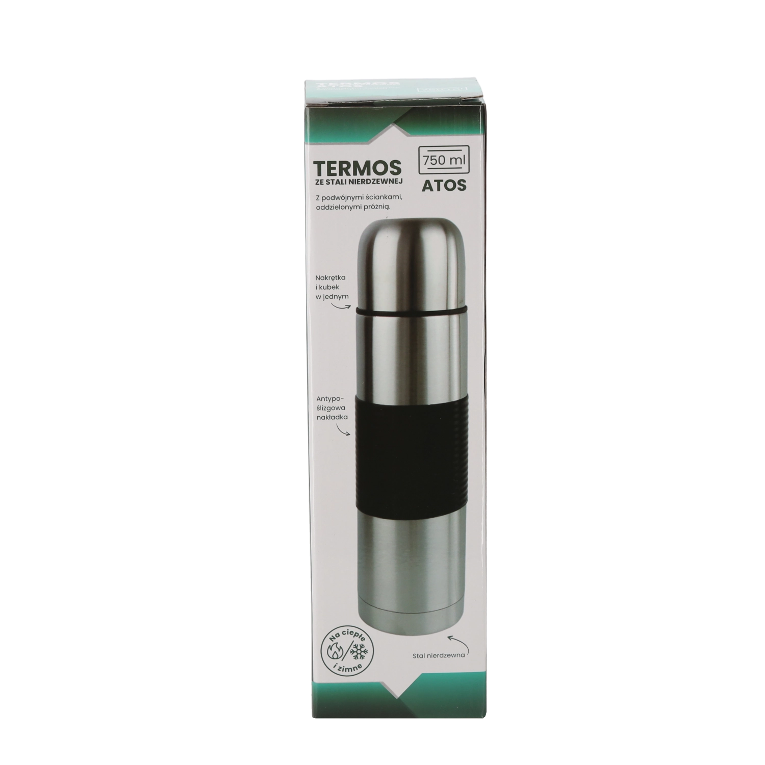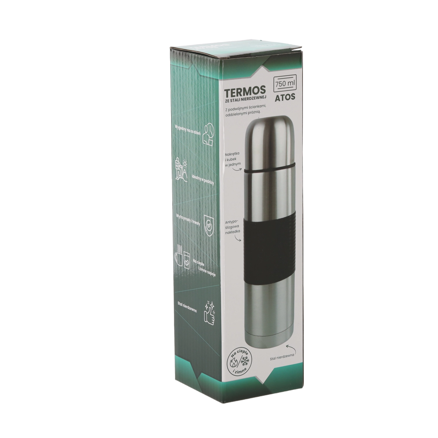 Ontdek de betrouwbare ATOS-thermosfles van 750 ml voor elke dag – voor op het werk, onderweg en outdoor. Dankzij de dubbele wand van roestvrij staal biedt hij uitstekende isolatie-eigenschappen en weerstand tegen schokken en corrosie. De siliconen antislip grip zorgt voor een veilige houvast.