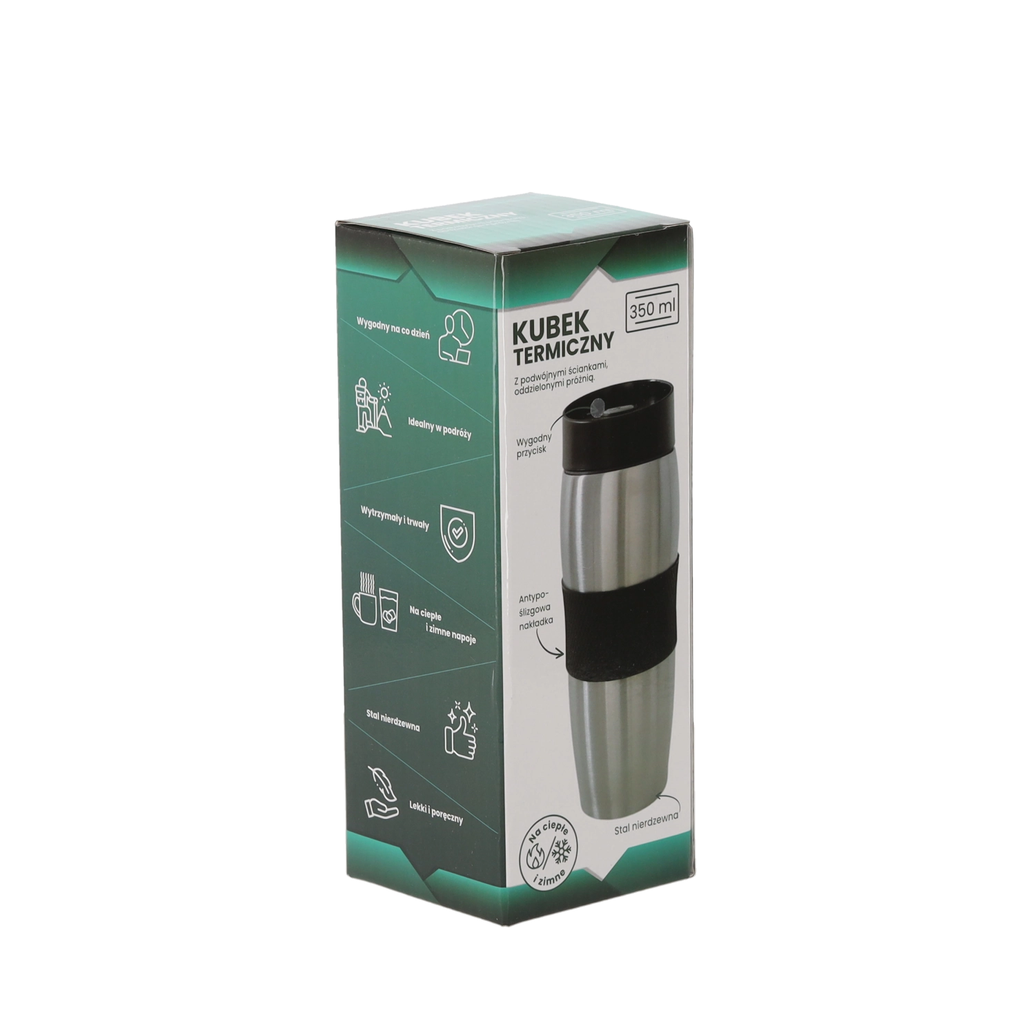 Geniet overal en altijd van je favoriete drankje. Deze roestvrijstalen thermosbeker met een inhoud van 350 ml is ontworpen voor dagelijks gebruik onderweg – in de auto, op kantoor en tijdens uitstapjes. Dankzij de dubbelwandige roestvrijstalen wanden blijven drankjes langer warm of koud, is hij schokbestendig en makkelijk schoon te maken.
