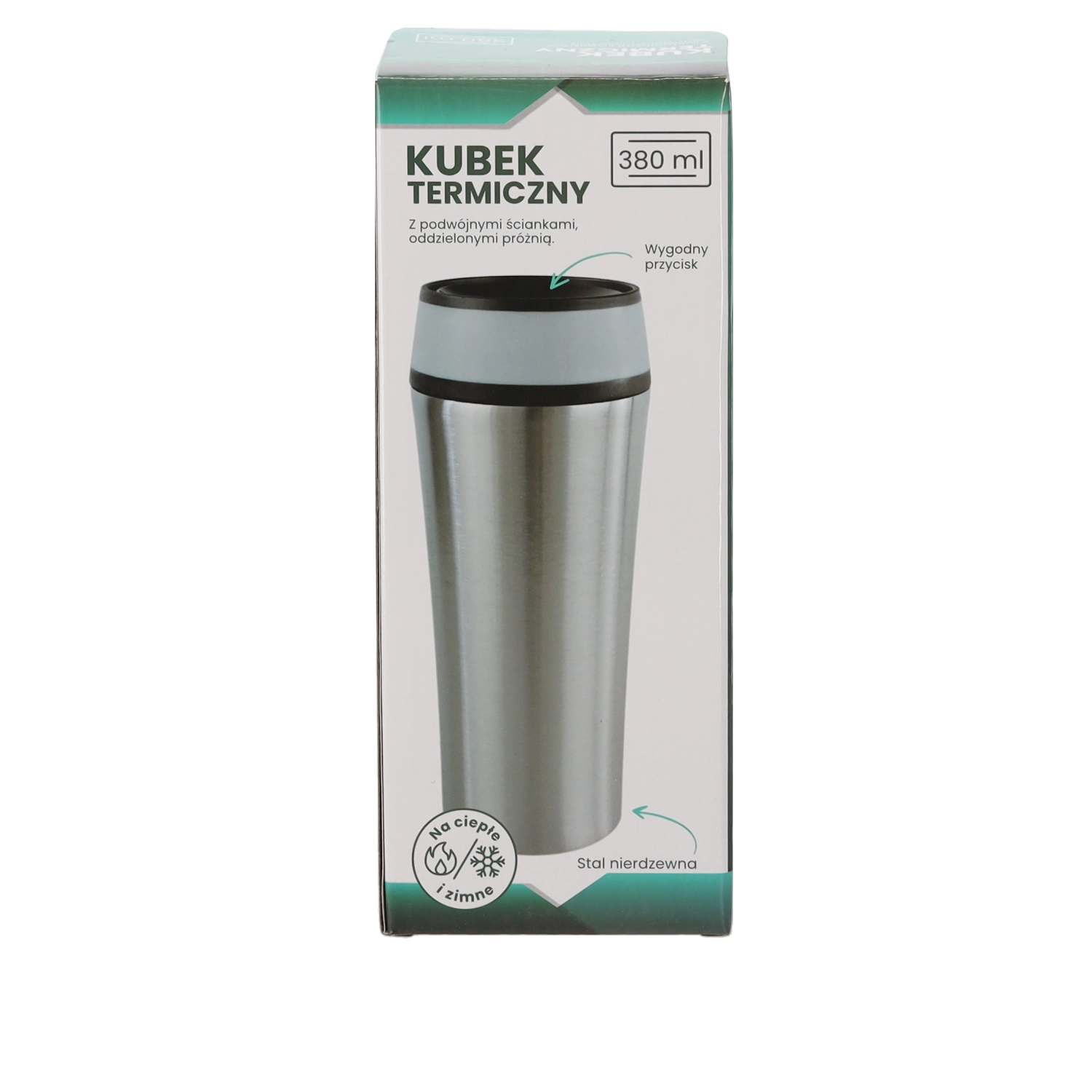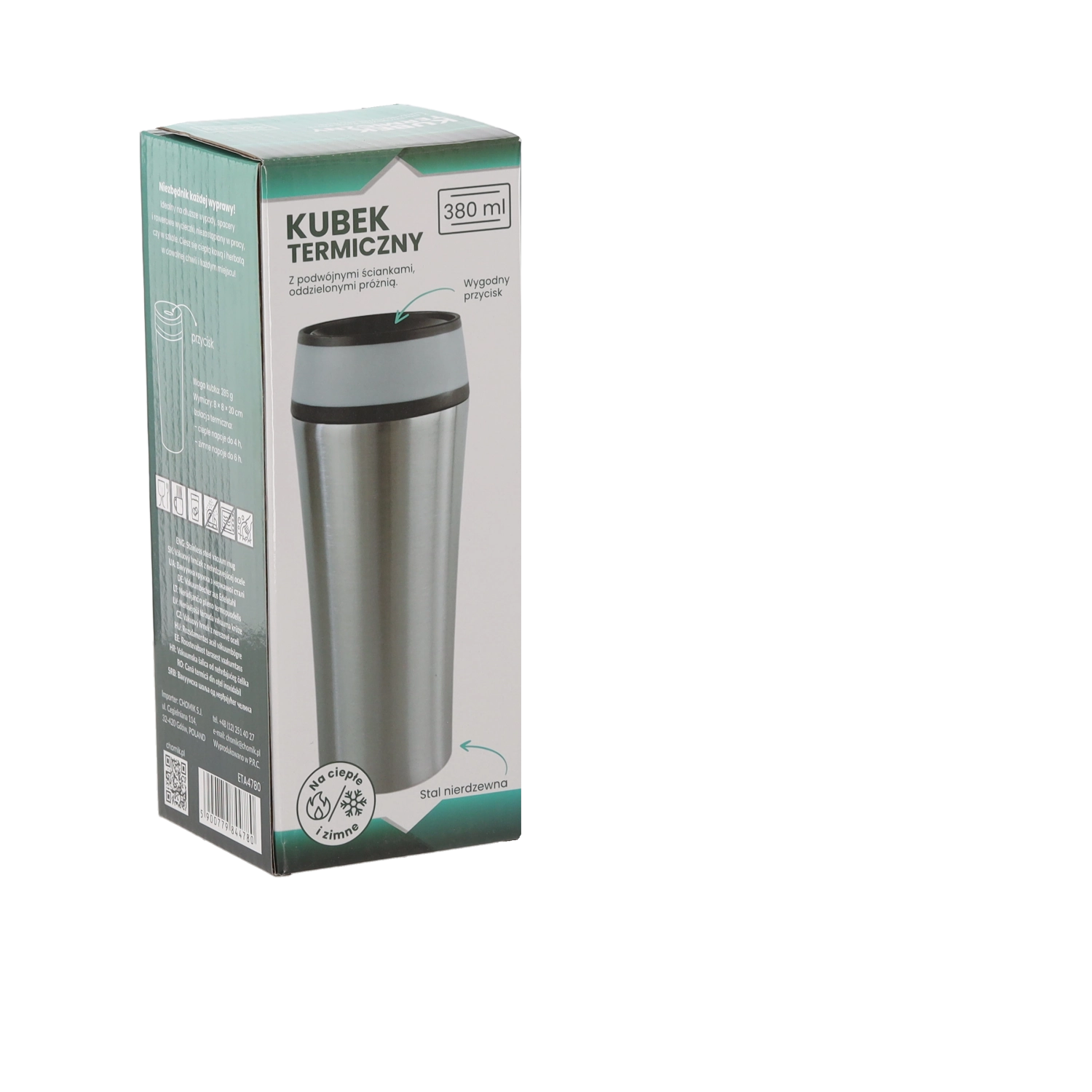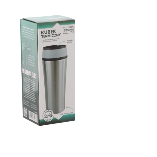 Praktische thermosbeker van 380 ml met dubbelwandig roestvrij staal houdt je drankje langer op de ideale temperatuur. Dankzij de uitstekende thermische eigenschappen geniet je uren later nog van hete koffie of thee, onderweg, op het werk of tijdens het hiken.