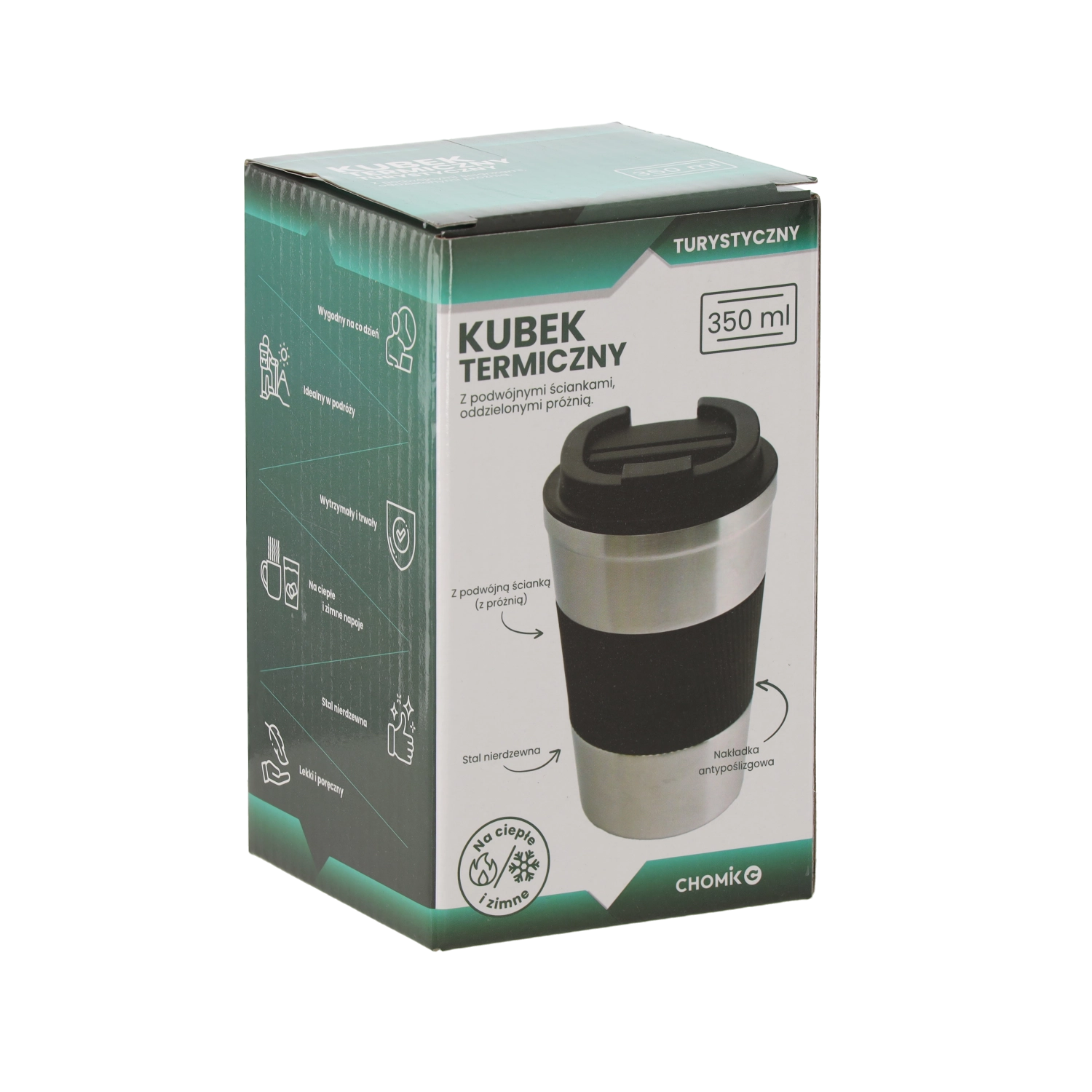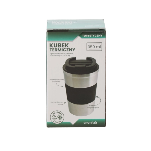Praktische thermobeker met een inhoud van 350 ml van hoogwaardig roestvrij staal met vacuümconstructie houdt je drankje warm of koud tot 4 uur. Heeft een antislip siliconen manchet voor een zekere grip, een schroefdeksel van duurzaam PP en is geschikt voor de vaatwasser. Het elegante oppervlak in de natuurlijke kleur van roestvrij staal past op het werk, in de auto en op uitstapjes.