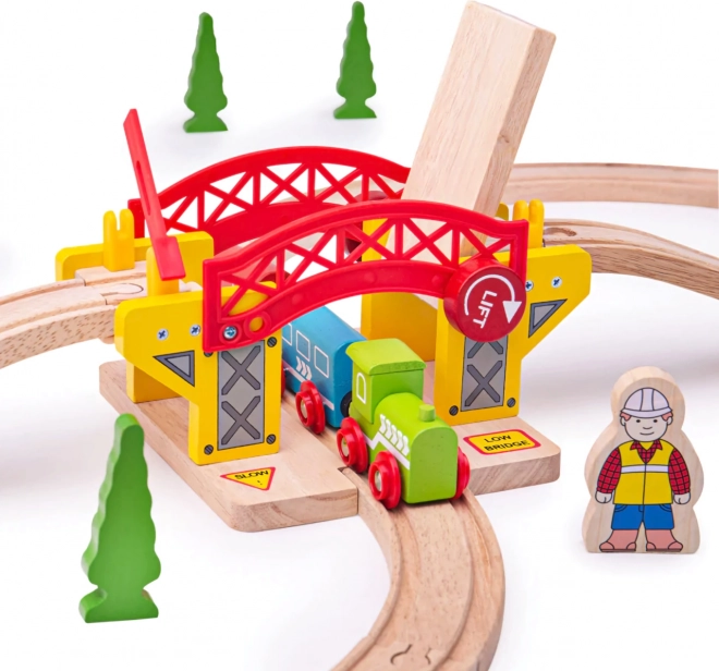 De houten beweegbare brug is een perfecte aanvulling op elke treinbaan. Deze brug is compatibel met alle houten treinbanen op de markt en is gemaakt van hoogwaardige en verantwoord verkregen natuurlijke materialen. De constructie ondersteunt creativiteit, behendigheid en coördinatie en biedt realistische functies zoals het optrekken van de brug.