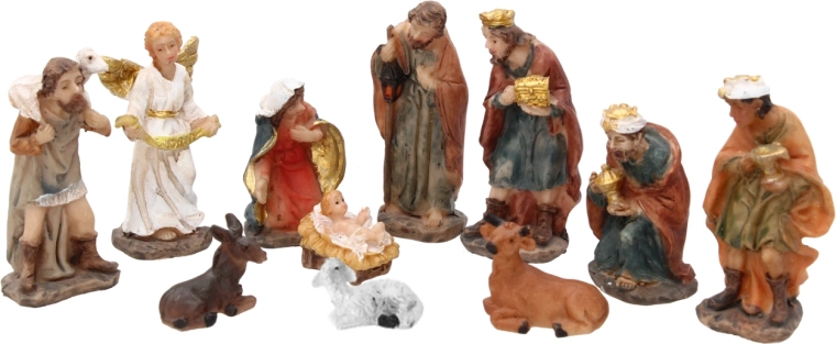De set bevat alle hoofdfiguren van de traditionele kerststal – van de Heilige Familie en een engel tot de Drie Koningen, een herder en dieren. Direct klaar om neer te zetten.