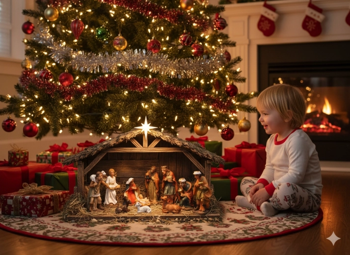 Elke figur is zorgvuldig met de hand geschilderd in natuurlijke kleurschakeringen met goudaccenten, die de scène diepte en een feestelijke uitstraling geven.