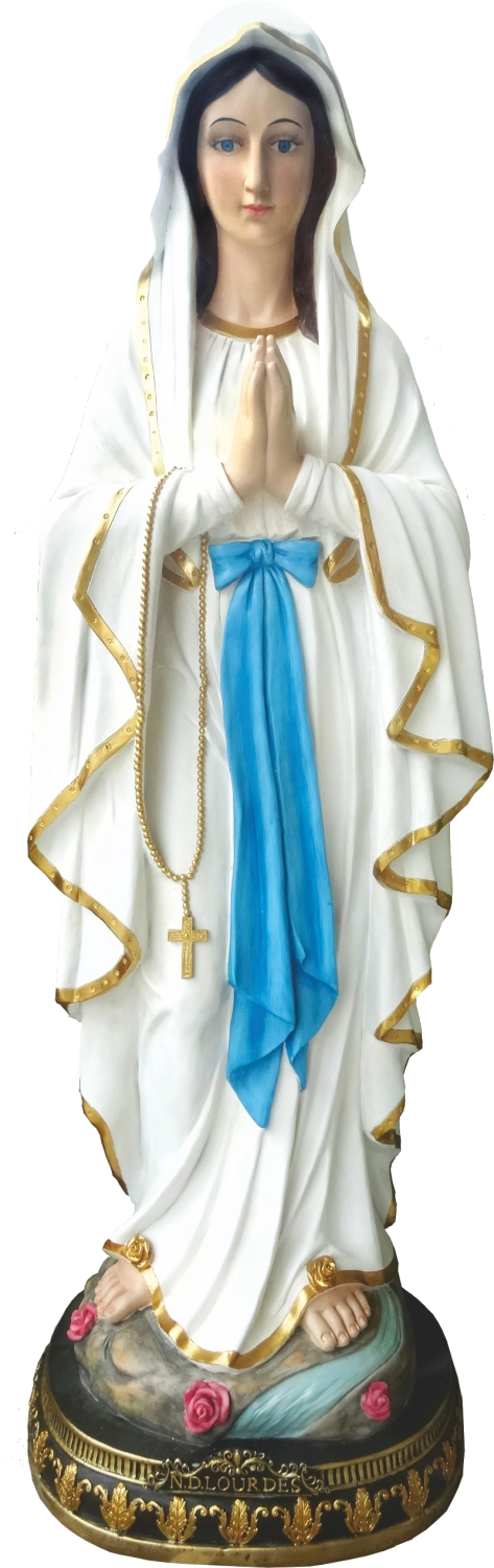 Dit indrukwekkende beeld van Onze-Lieve-Vrouw van Lourdes brengt rust en een spirituele sfeer in elke ruimte. Dankzij het zorgvuldige handmatige schilderwerk komen de verfijnde gelaatskenmerken, plooien van het gewaad, gouden details en de rozenkrans mooi tot uiting. Glazen ogen geven het beeld diepte en levendigheid.