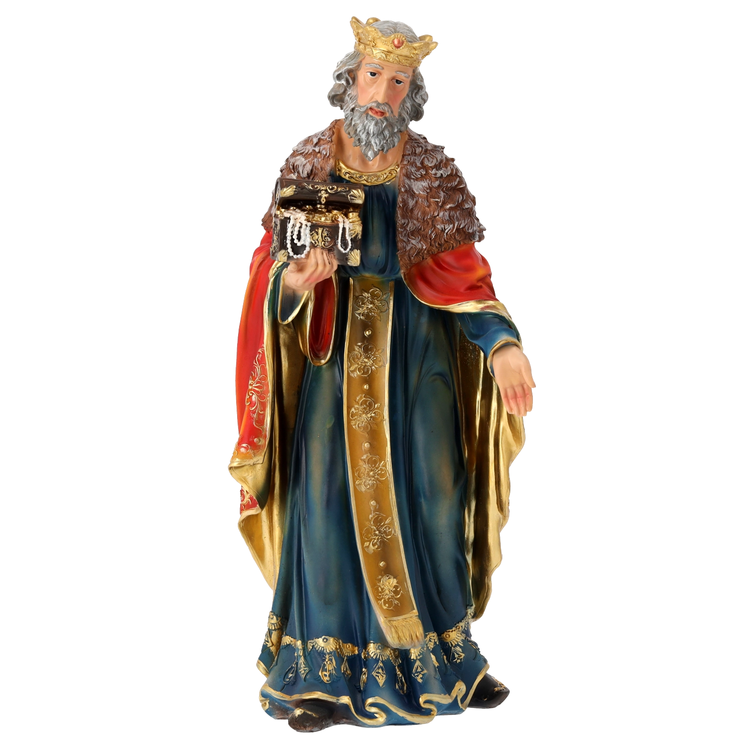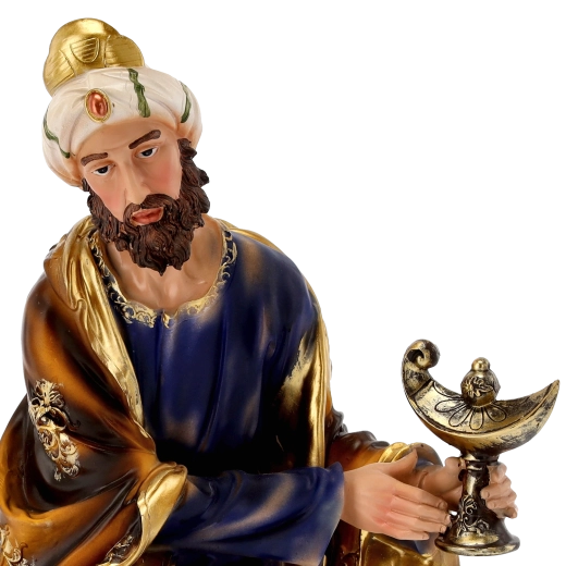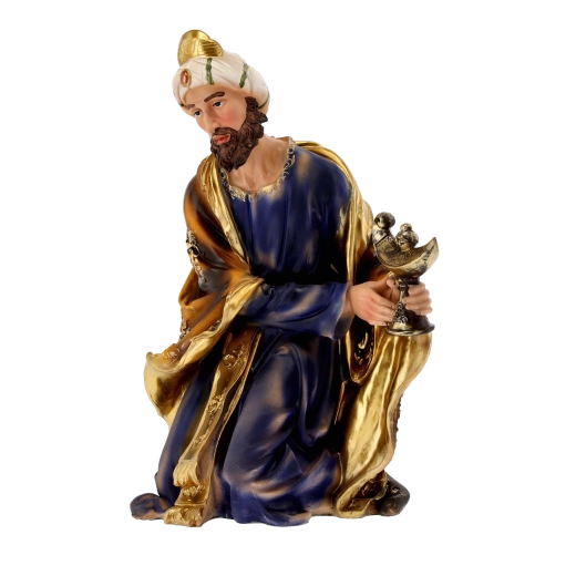 Een complete kerststalscène met realistische details en handschildering geeft uw kerst een traditionele charme. Polyresin (synthetische hars) is sterk, licht en weerbestendig, waardoor de figuren ook veilig buiten geplaatst kunnen worden. Elk stuk blinkt uit door fijn gemodelleerde draperieën, gouden accenten en een stabiele basis.