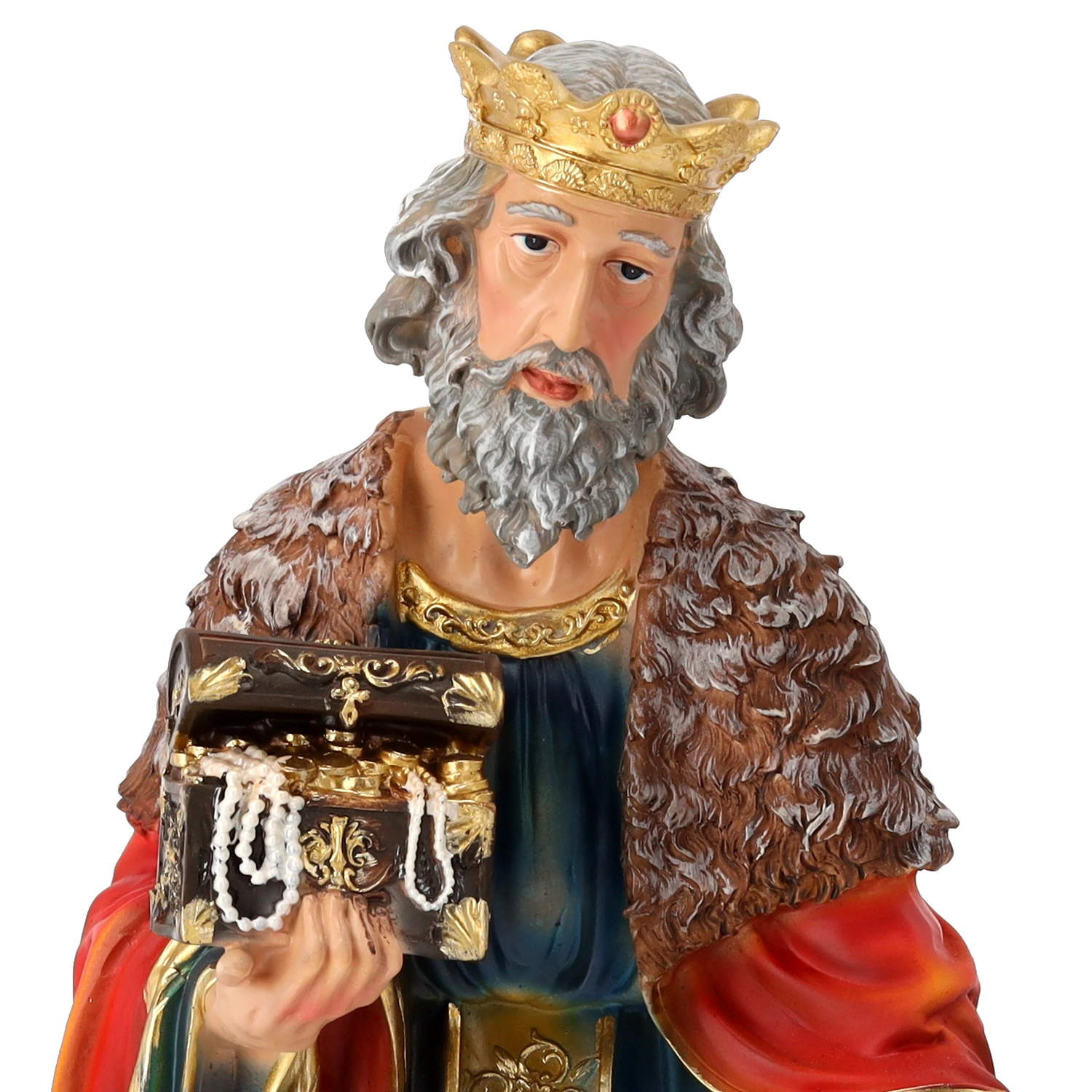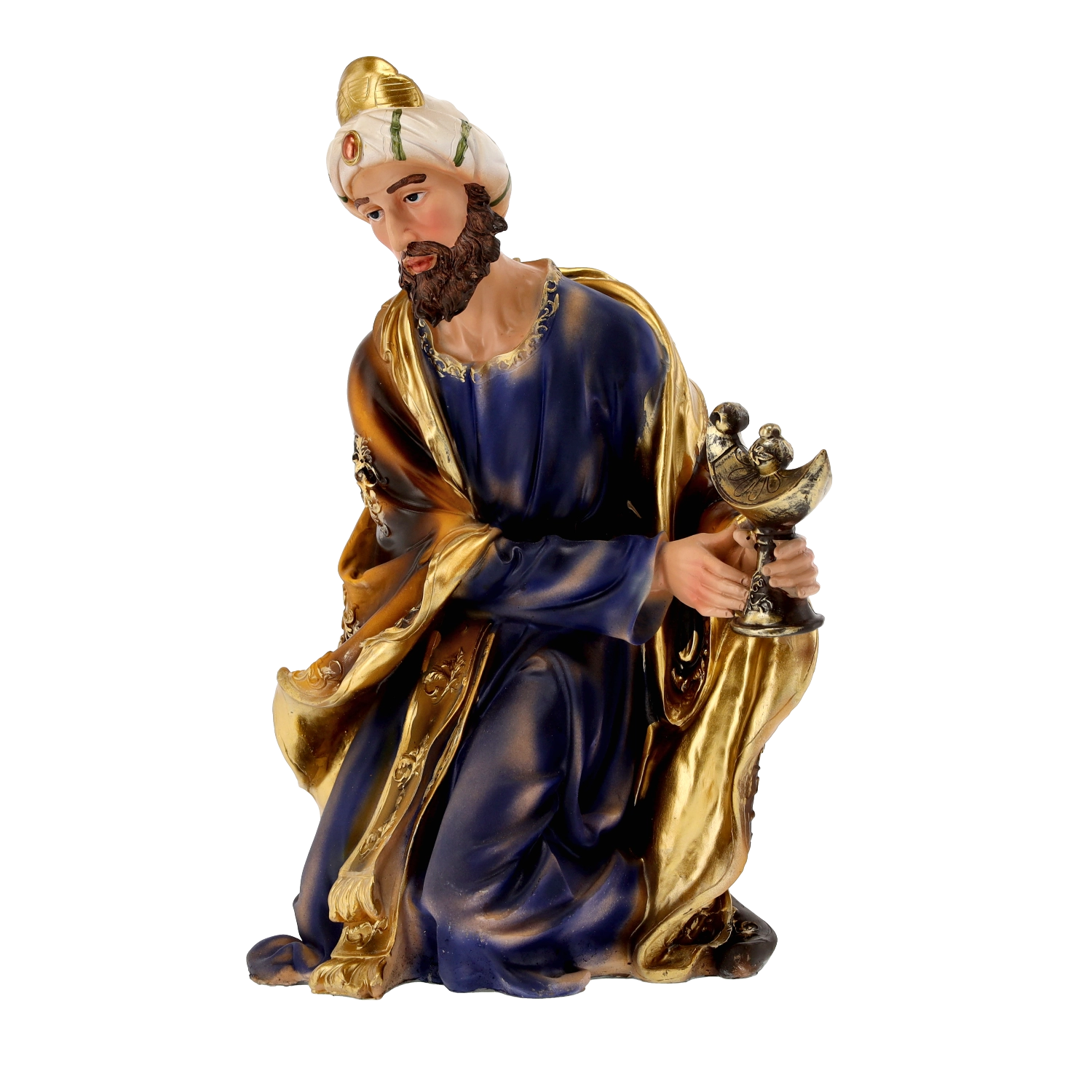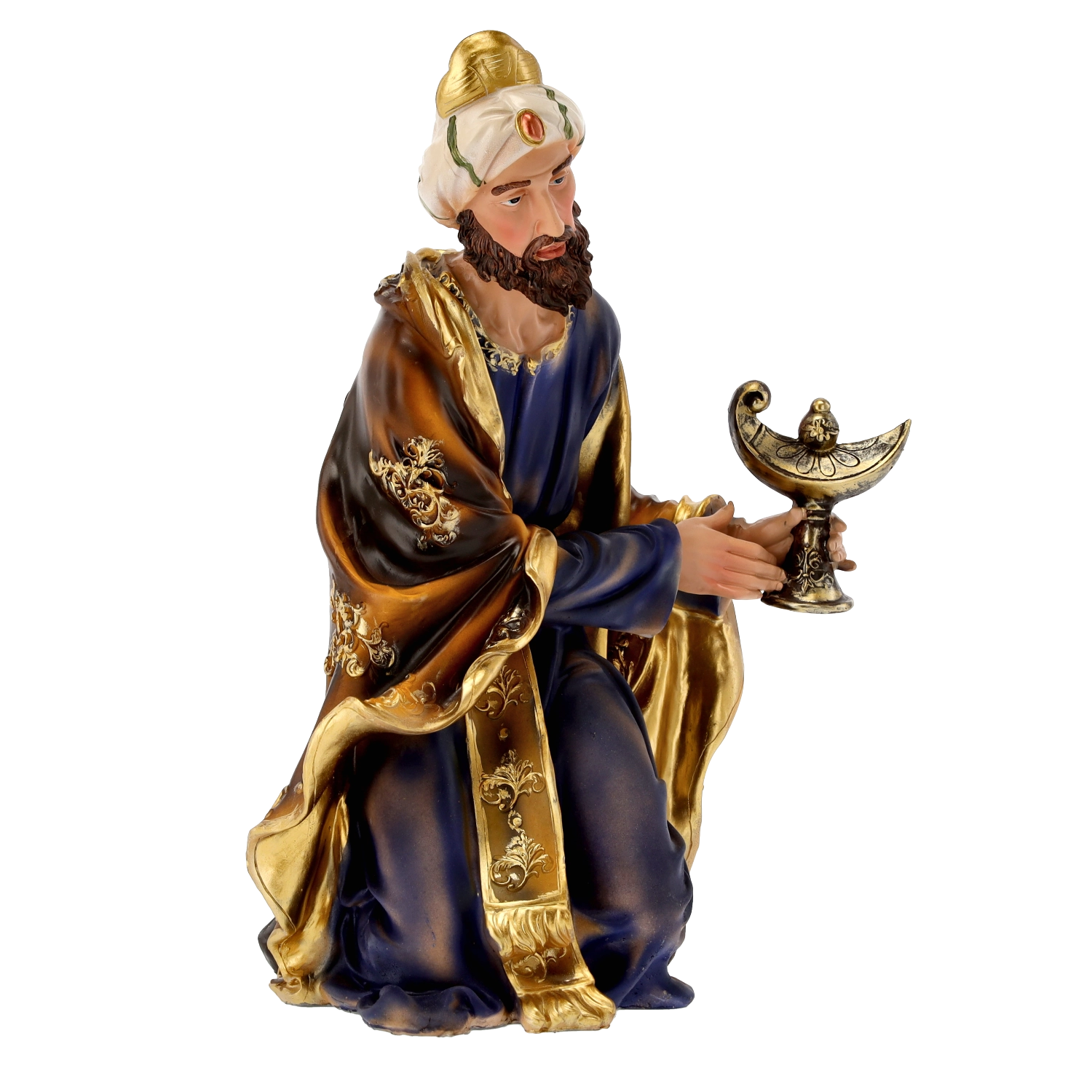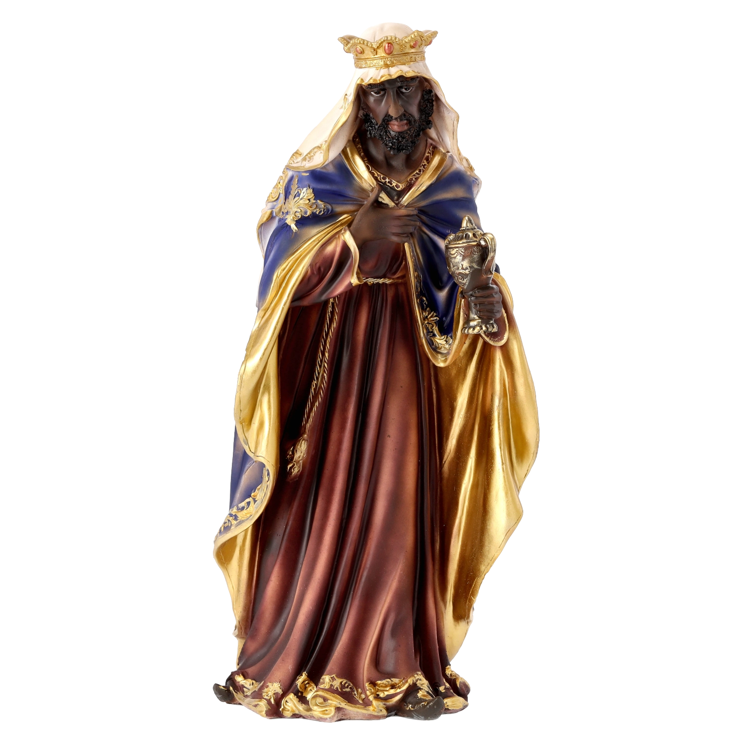 Elke figuur valt op door verfijnde gelaatstrekken, precies gevormde plooien in de kleding en gouden accenten. Dankzij het handschilderwerk oogt de scène levendig en feestelijk.