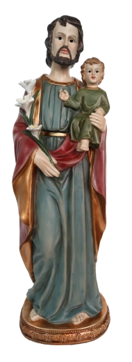 Deze decoratieve figuur brengt rust en een spirituele dimensie in de ruimte. De combinatie van polyesterhars en gips zorgt voor stevigheid en een lange levensduur, terwijl handgeschilderde accenten de expressie van de gezichten, de gebaren en de rijkdom van de gewaden benadrukken.