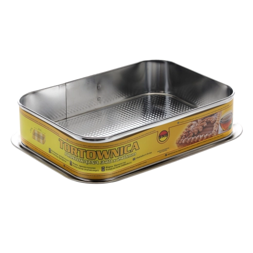 Deze rechthoekige springvorm is een ideale keuze voor het bakken van grotere taarten, cakes, plakken en hartige ovengerechten. Dankzij de doordachte constructie met een geprofileerde bodem verbetert de circulatie van hete lucht, wat bijdraagt aan egale garing en een betere textuur van het deeg. De uitneembare bodem maakt het gemakkelijk om zelfs kwetsbare desserts te lossen zonder risico op scheuren of vervormen.