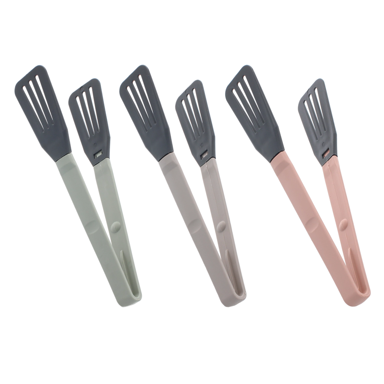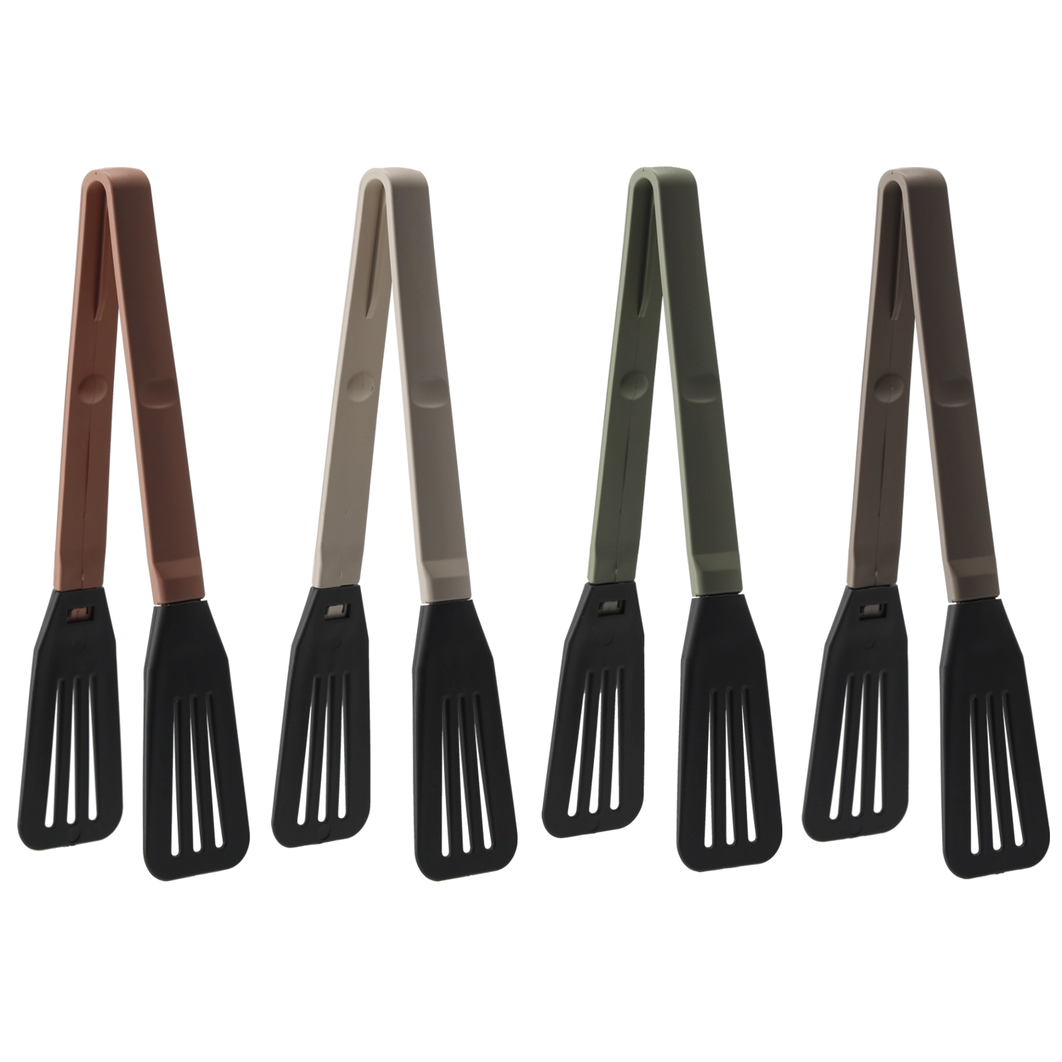 Nylon koppen met sleuven zijn zacht voor oppervlakken en grijpen voedsel toch stevig vast zonder pannen of potten te bekrassen.