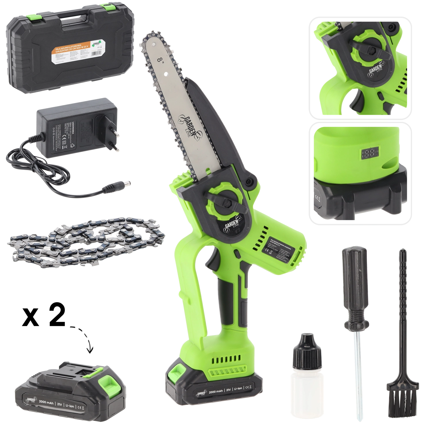 Accu mini-kettingzaag 20 cm, 900 W, 21 V