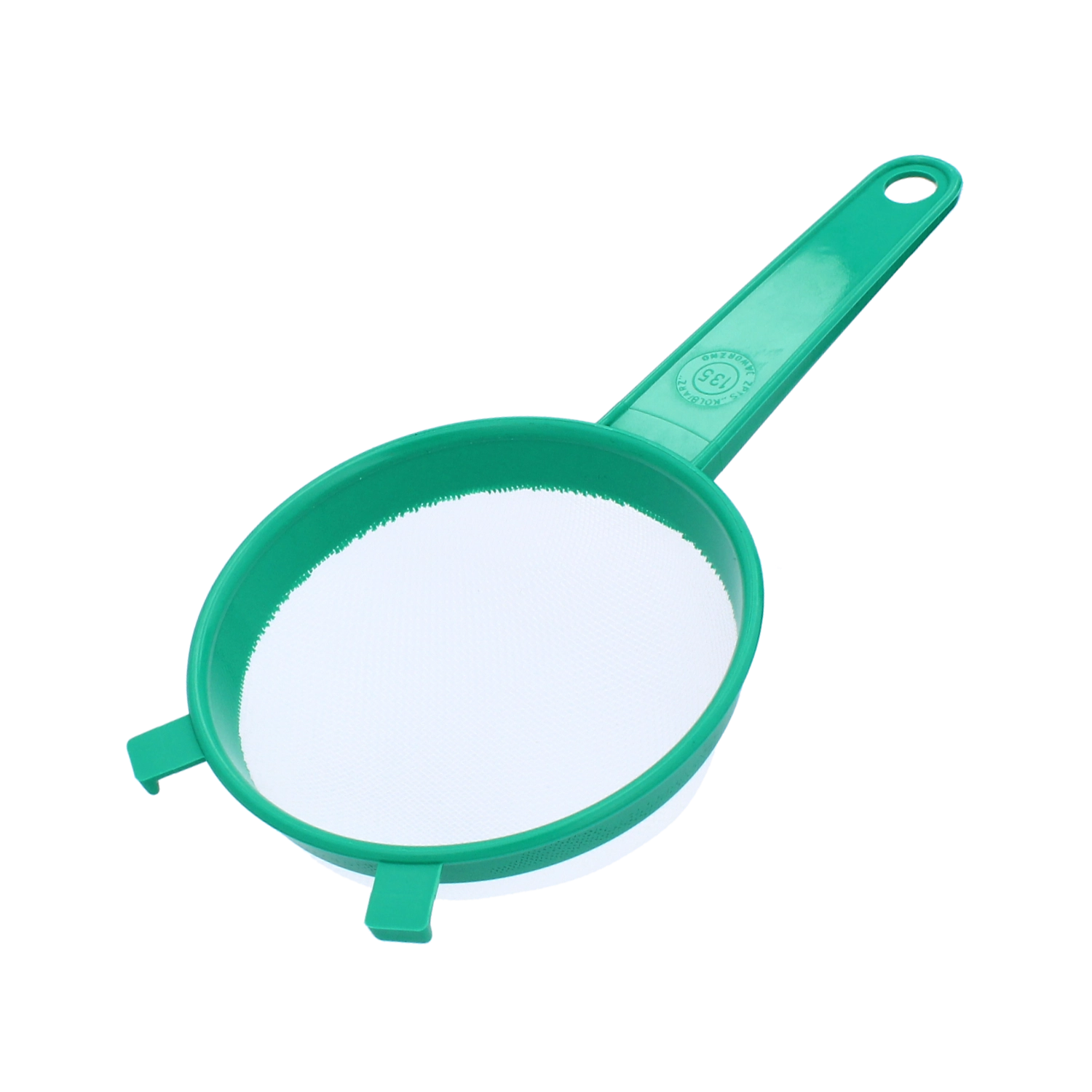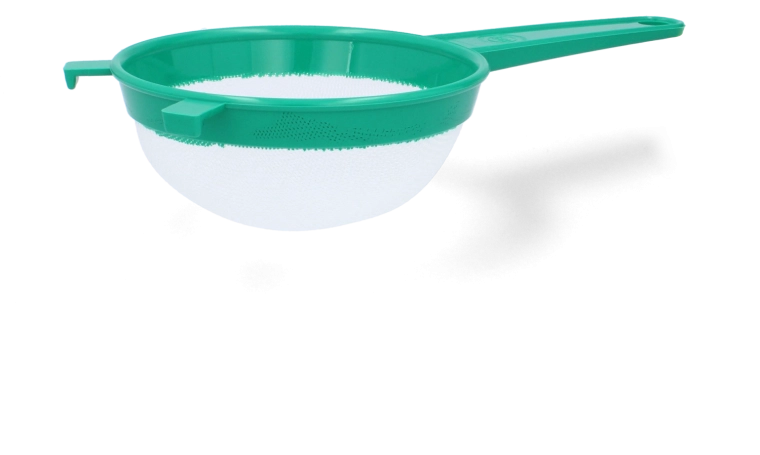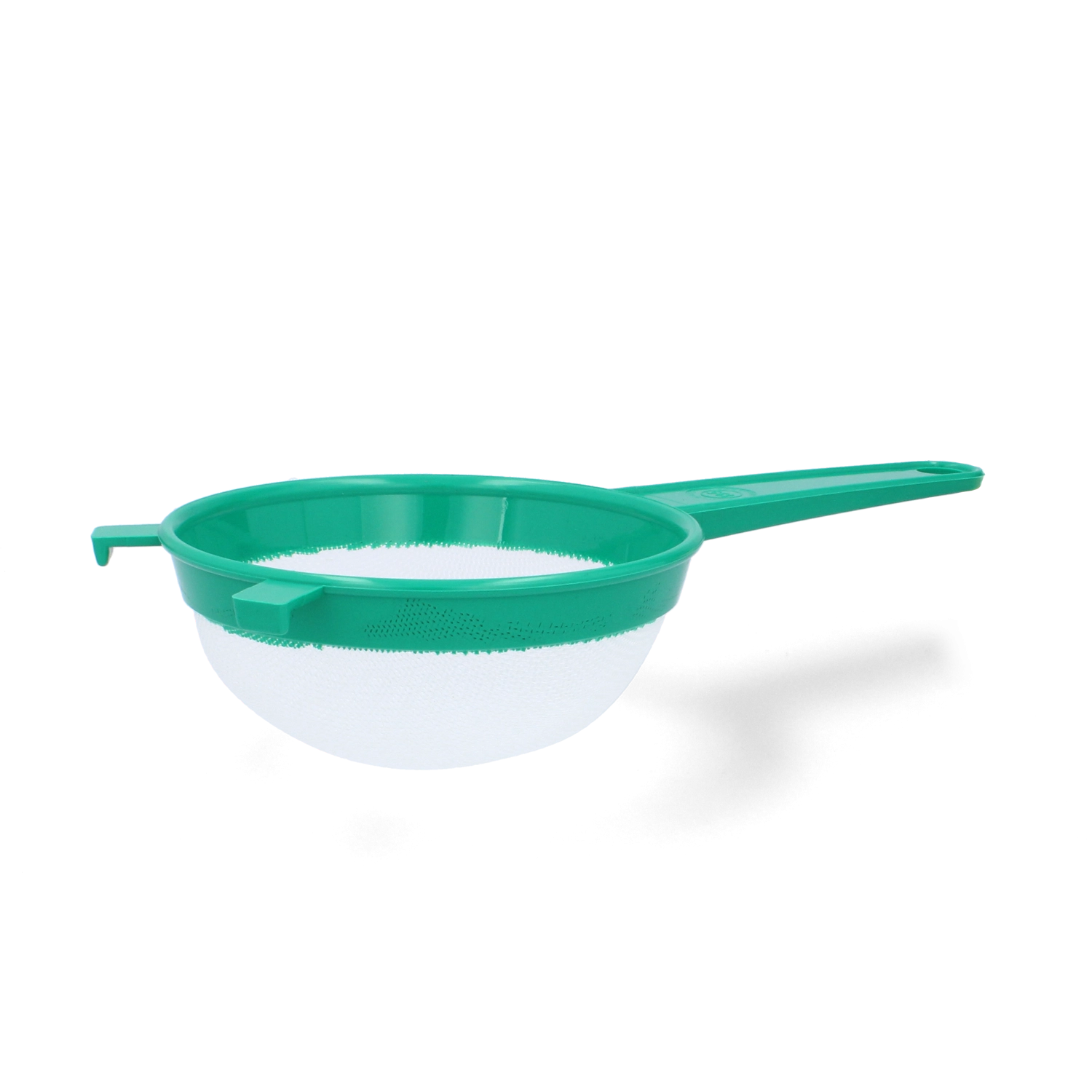 Dankzij de compacte afmetingen past de zeef gemakkelijk in een lade of kan hij aan een haak worden opgehangen. Hoogwaardig kunststof is bestand tegen mechanische slijtage en schoonmaken is in een handomdraai gebeurd, waardoor het je dagelijkse hulp wordt bij koken en bakken.