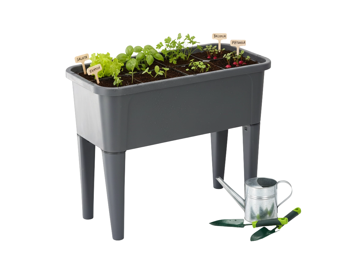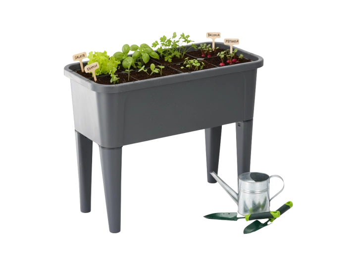 De robuuste behuizing van duurzame PP kan het hele jaar door wisselende omstandigheden aan, en de antracietkleur past bij moderne buitenruimtes. De hoogte van 83 cm ontziet de rug en vergemakkelijkt water geven en onderhoud, of je nu kweekt op het terras, balkon of bij verhoogde bedden.