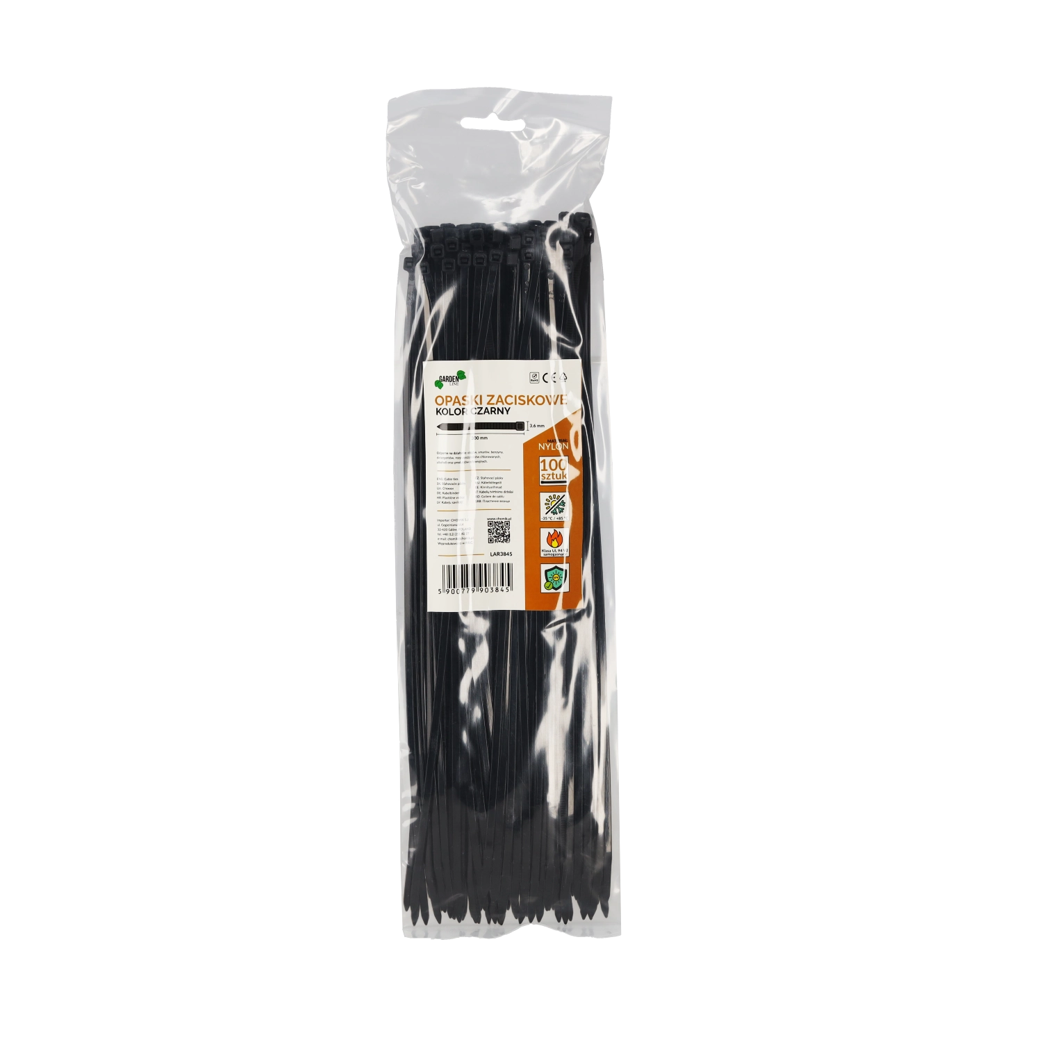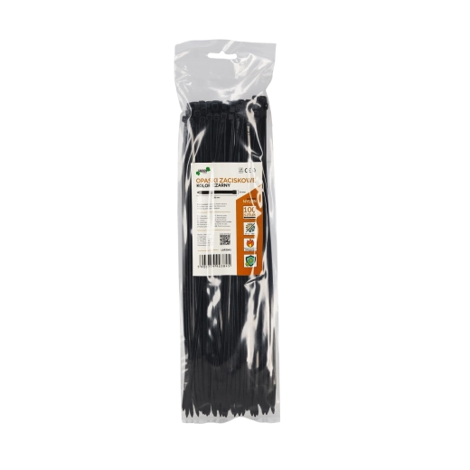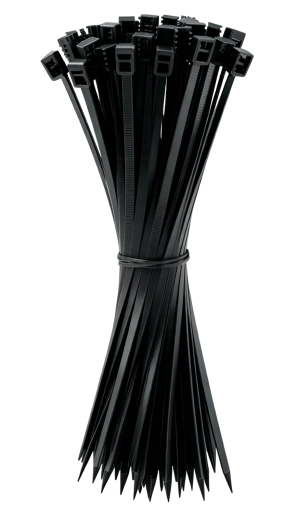 Praktische set zwarte kabelbinders van 3,6 × 300 mm voor veelzijdig gebruik in huis, werkplaats en industrie. Gemaakt van hoogwaardige nylon met zelfdovende klasse UL 94 V2, met UV-bestendigheid en een breed temperatuurbereik voor gebruik. De binders zijn bestand tegen oliën, smeermiddelen, benzine en detergenten; de verpakking bevat 100 stuks.