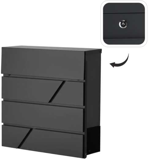 Dankzij de compacte afmetingen van 37 × 37 × 10,5 cm en het moderne uiterlijk past de brievenbus gemakkelijk op de gevel van een woning, appartementsgebouw of kantoor. Eenvoudige postinworp en gemakkelijke toegang vanaf de voorkant maken het dagelijks gebruik comfortabel.