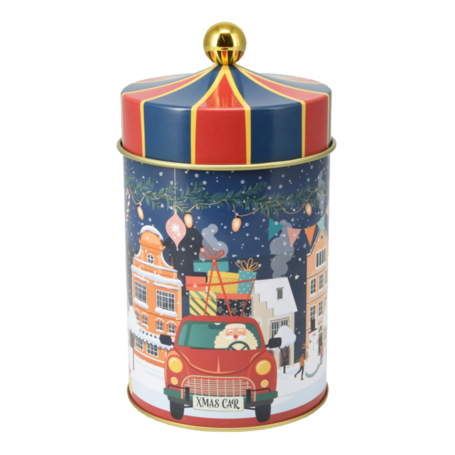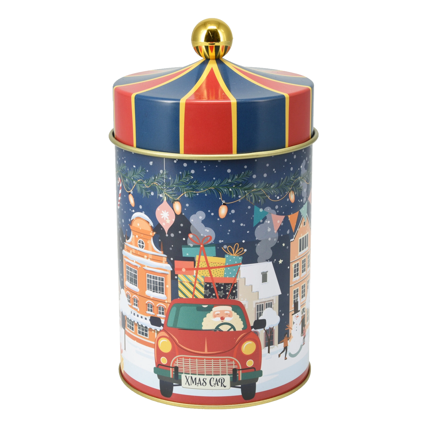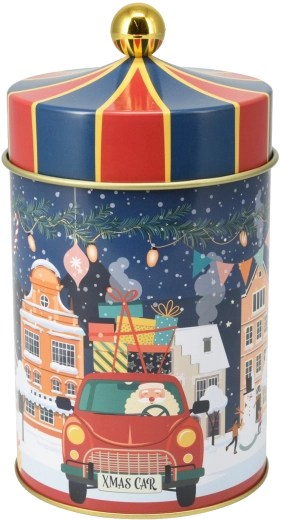 De motieven “Xmas Car” en “Hello Winter” zorgen voor een warme winterse sfeer en maken van de trommel een stijlvolle decoratie, ook buiten het kerstseizoen.