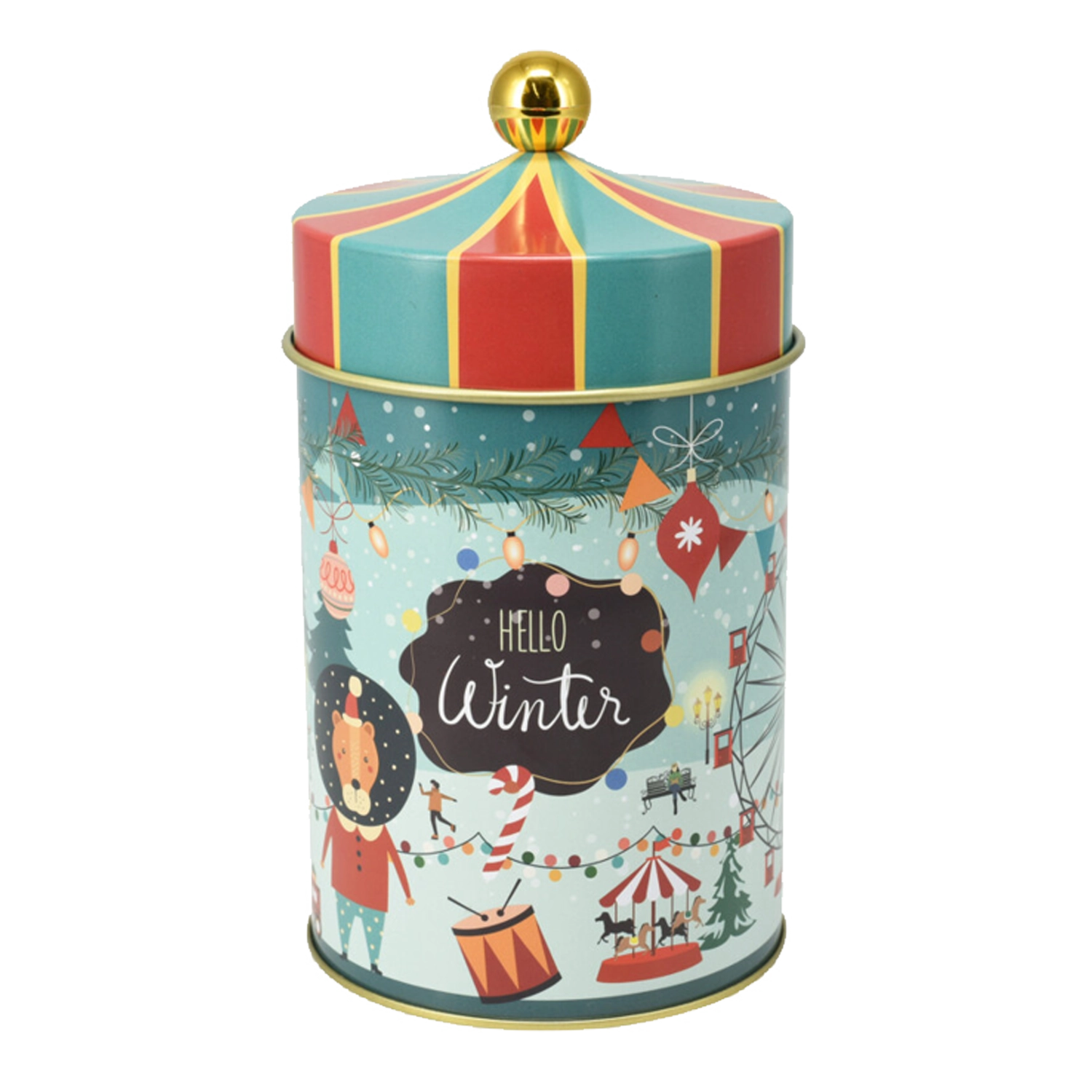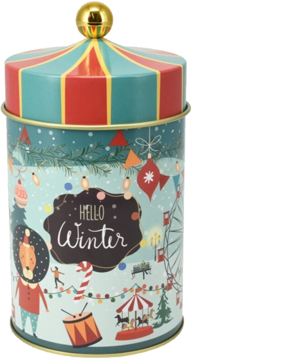 Vrolijke winterse illustraties met de opschriften “Xmas Car” en “Hello Winter” geven je huis een knusse, feestelijke sfeer. De trommel is perfect voor koekjes, peperkoek, snoep, maar ook voor kleinigheden zoals theezakjes of kleine cadeautjes. Dankzij de veelzijdige look is hij ook geschikt als een lief kerstcadeau.