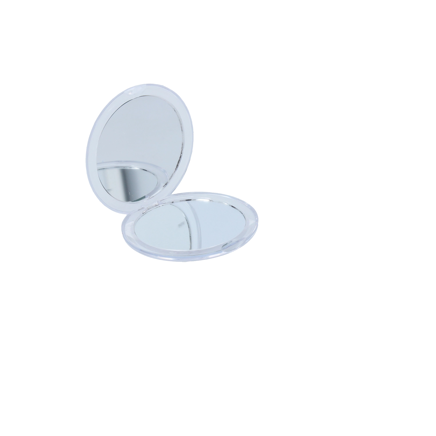 Twee tegenoverliggende spiegelvlakken bieden een heldere reflectie voor snelle checks en precieze aanpassingen van make-up en kapsel.