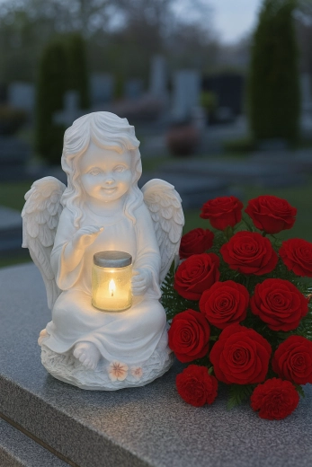 Dankzij het universele ontwerp past het in tuinarrangementen, op terrassen, balkons en in het interieur. Het symbool van de engel brengt een gevoel van bescherming en vrede – perfect als een attent cadeau of een teder aandenken aan dierbaren.