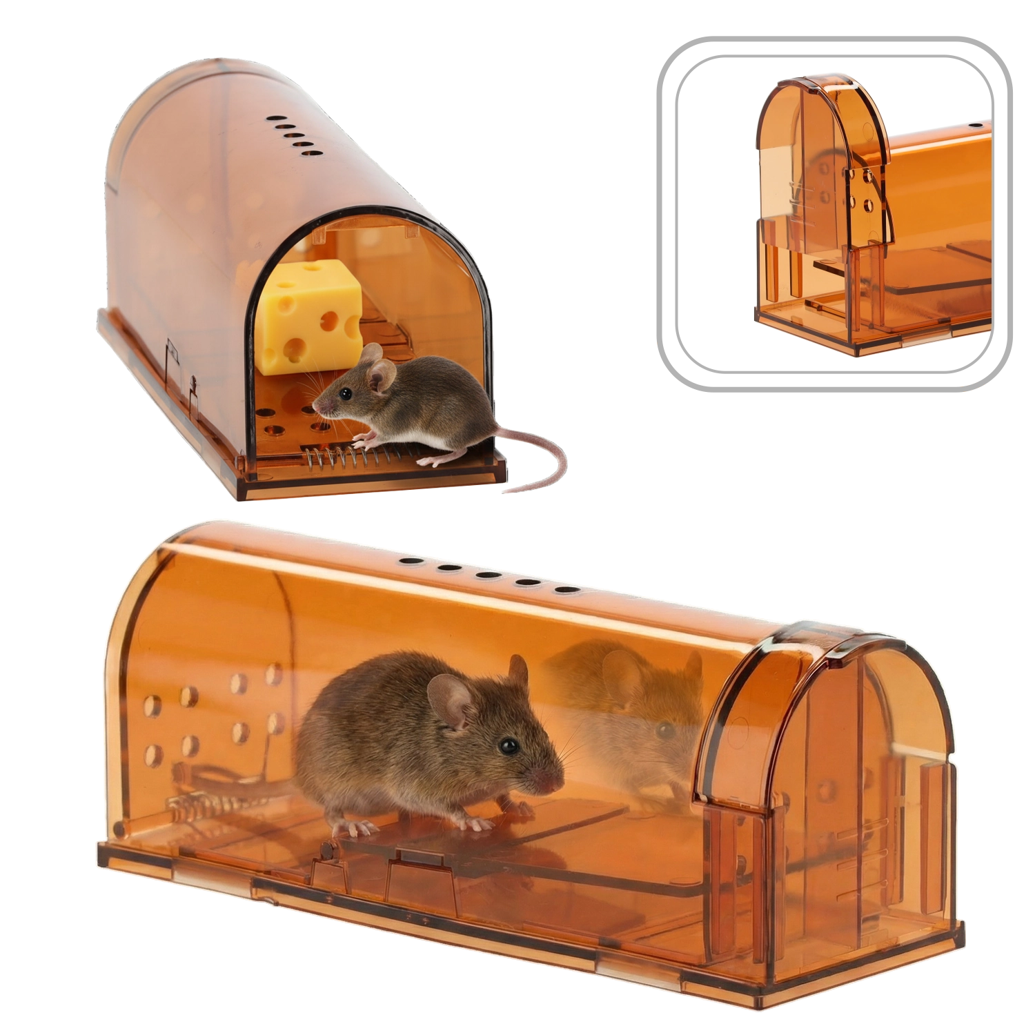 Humane vangkooi voor muizen en ratten, transparant, 17 × 6,2 × 6,4 cm, 2 stuks