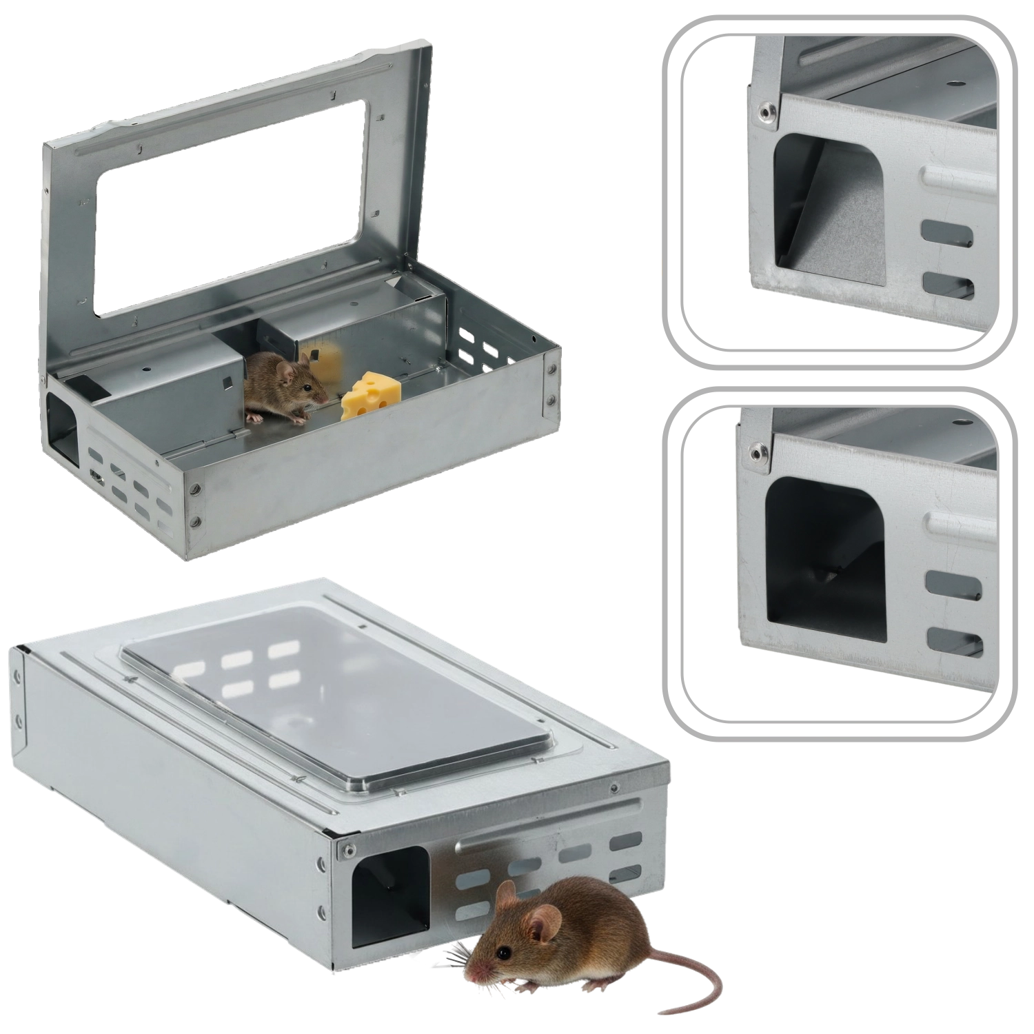 Deze levend vangende val is een ideale oplossing voor huishoudens, magazijnen en bedrijven waar veilige en milieuvriendelijke vangst van knaagdieren belangrijk is. De robuuste constructie van verzinkt staal is bestand tegen weersinvloeden en is daardoor geschikt voor langdurig gebruik, zowel binnen als buiten.