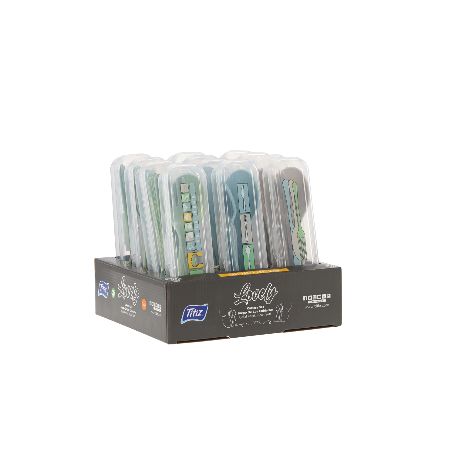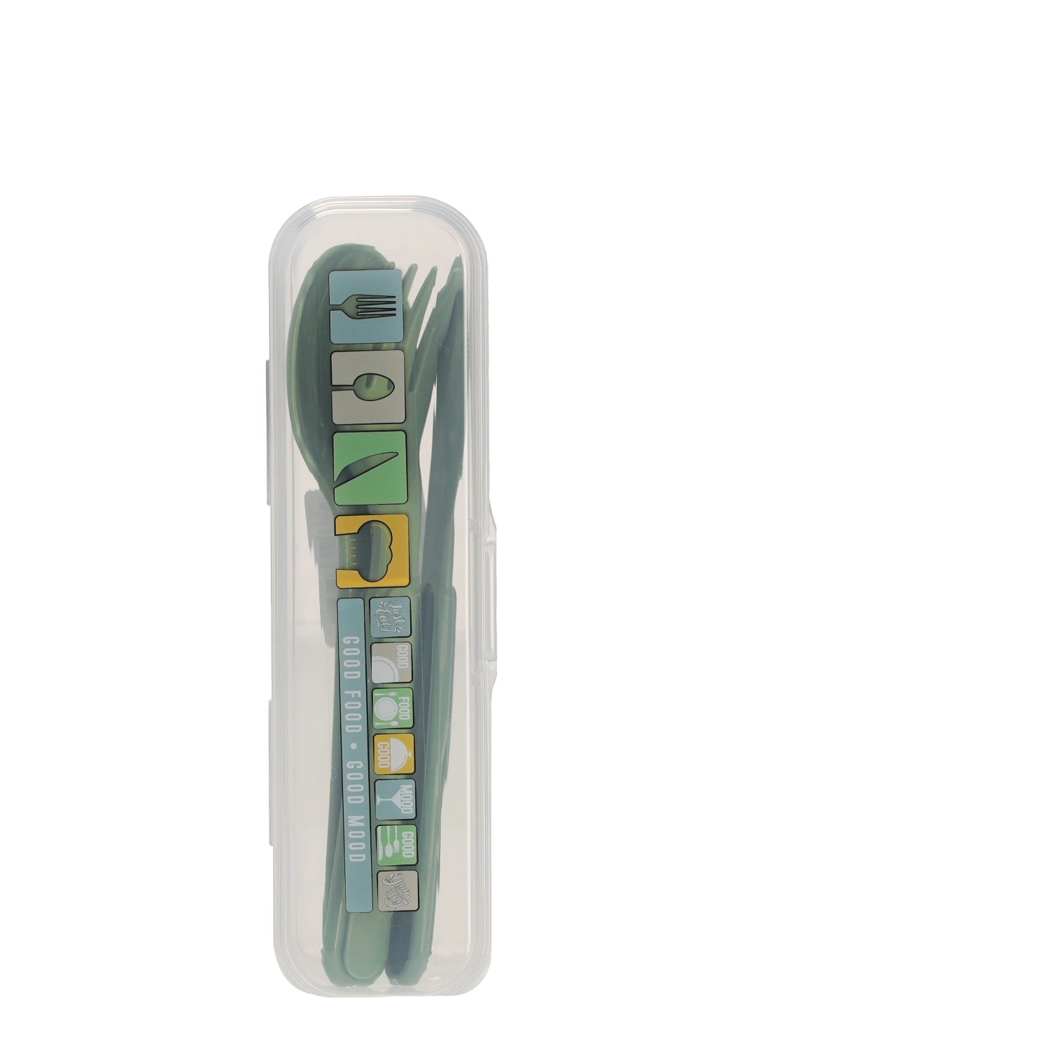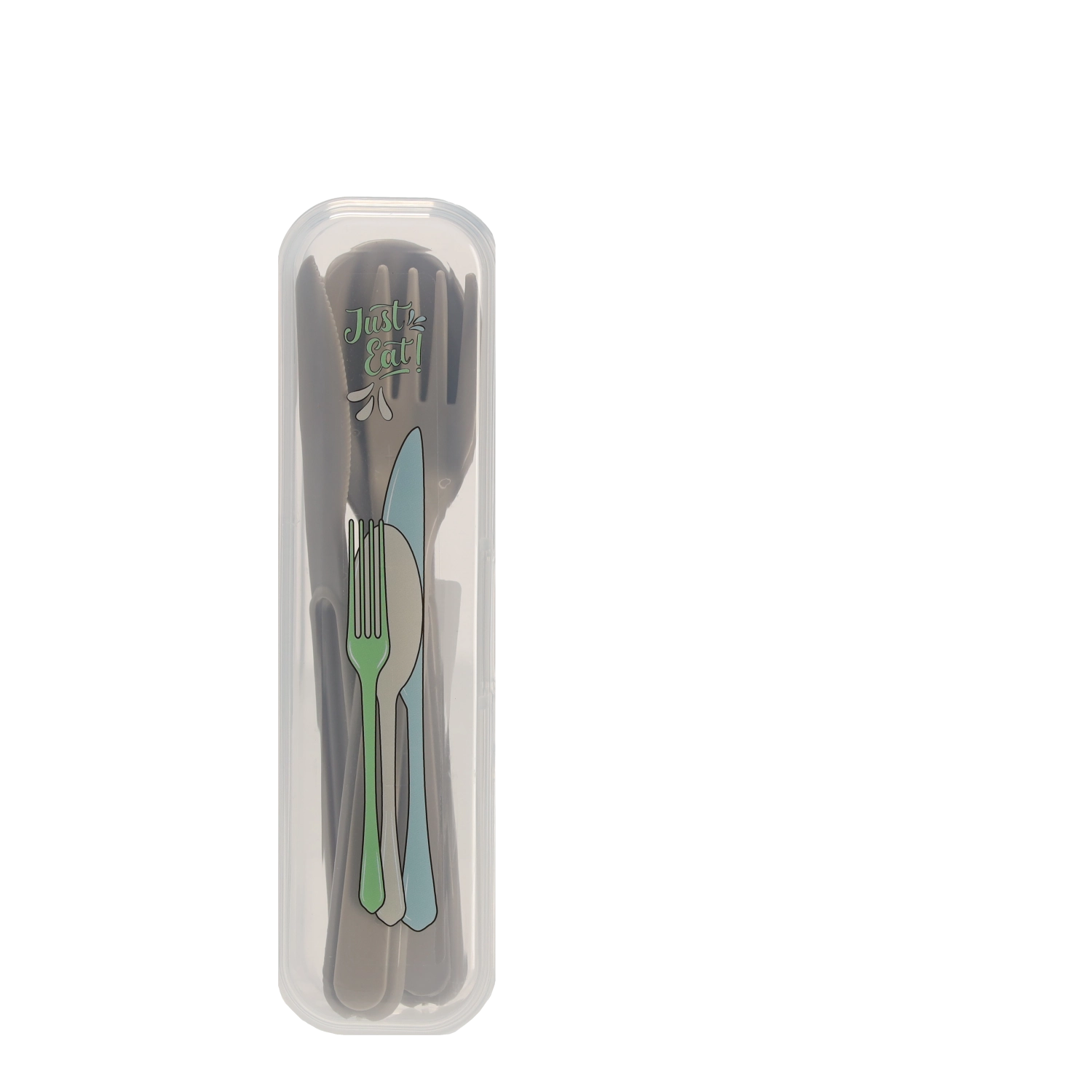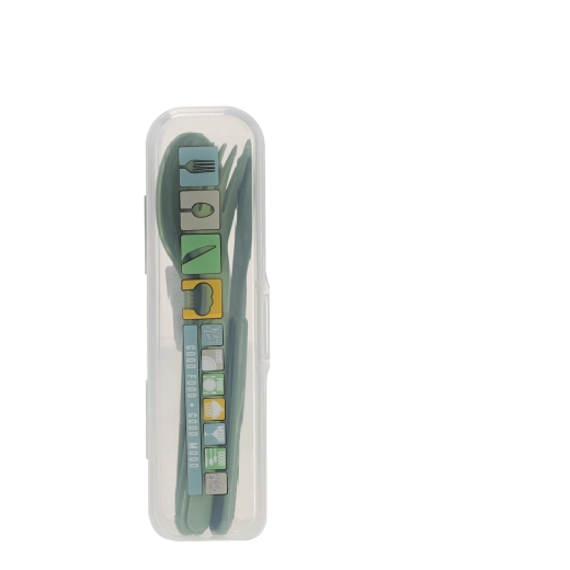 Het transparante reisetui houdt lepel, vork en mes schoon en veilig opgeborgen. Perfect voor in tas, rugzak of lunchbox.