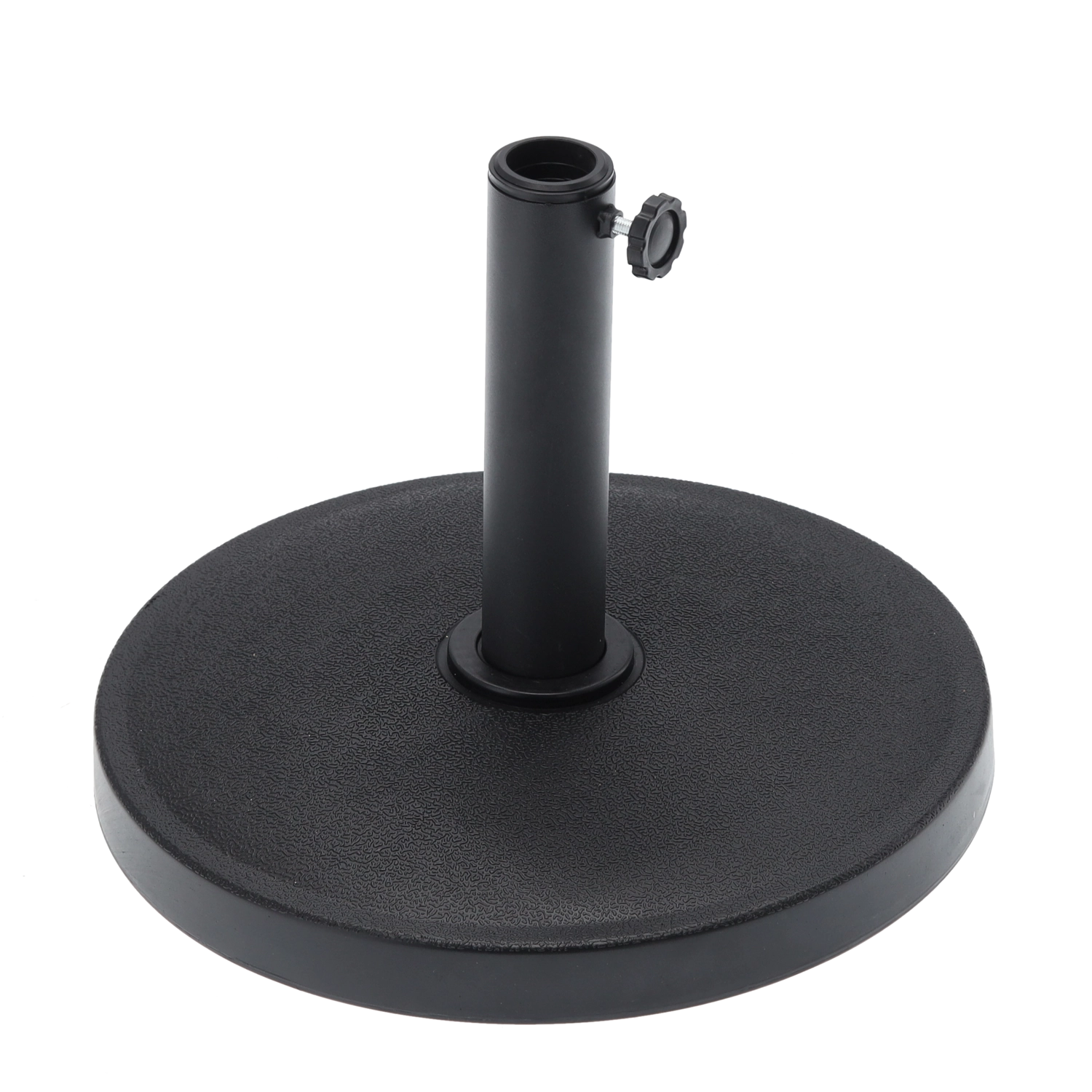 Praktische en elegante betonnen parasolvoet van 12 kg zorgt voor stabiliteit in de tuin, op het terras en balkon. Dankzij de duurzame materialen en de metalen buis met stelschroef bevestigt u veilig een parasol met een gangbare stokdiameter. De zwarte uitvoering past in elke stijl van buitenruimte.